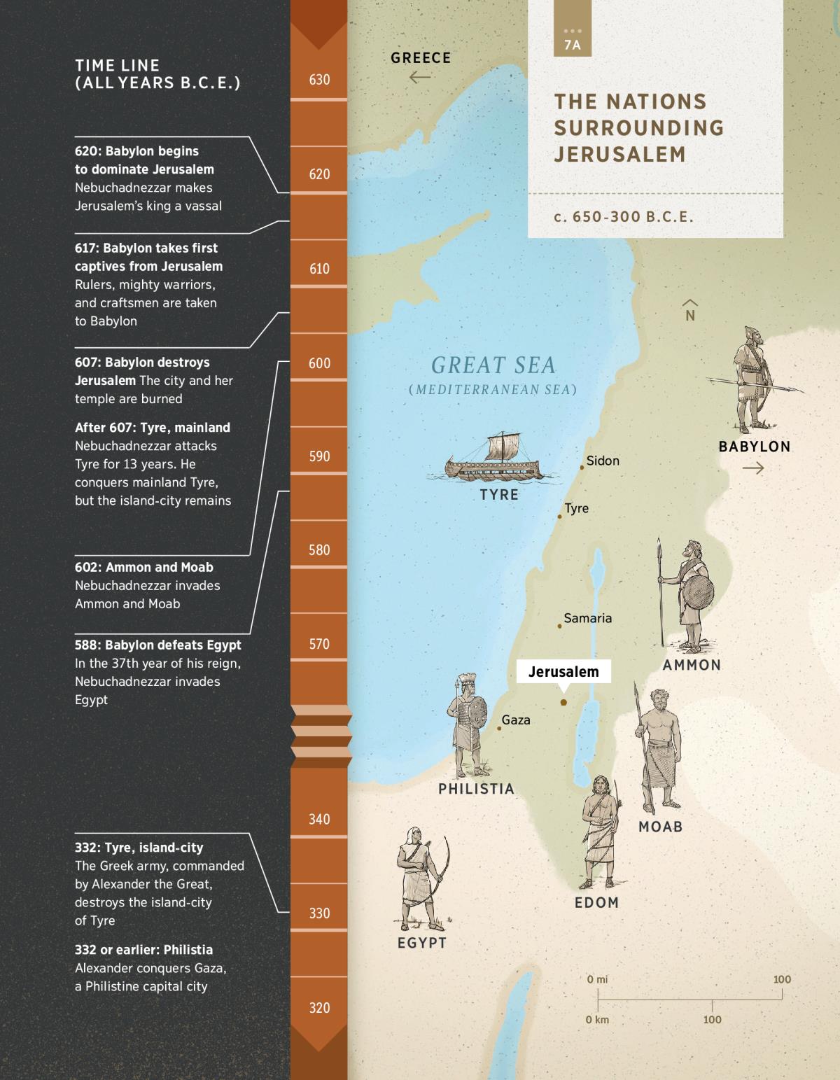 Nebuchadnezzar attacks Tyre for 13 years. He conquers mainland Tyre, but the island-city remains