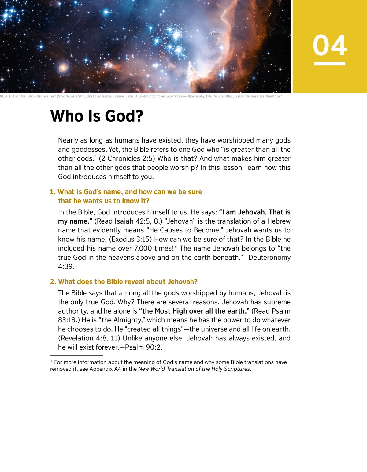 a For more information about the meaning of God’s name and why some Bible translations have removed it, see Appendix A4 in the New World Translation of the Holy Scriptures.