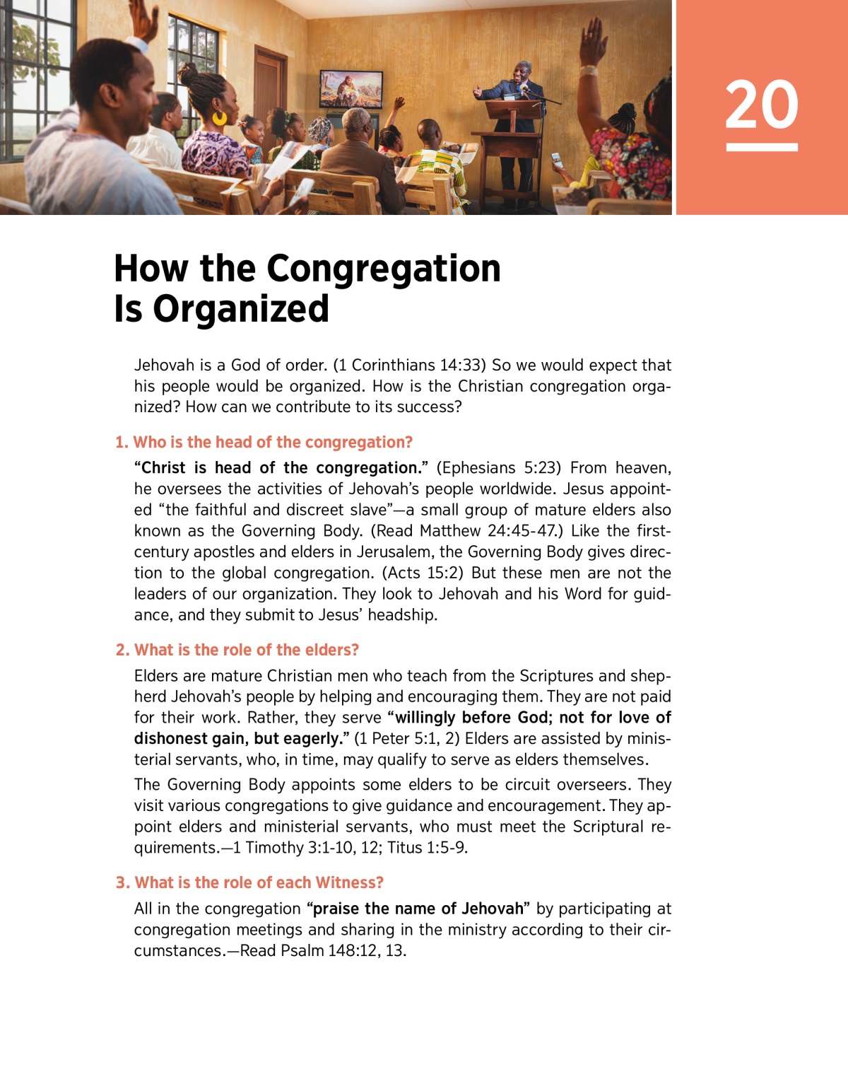 Jehovah is a God of order. (1 Corinthians 14:33) So we would expect that his people would be organized. How is the Christian congregation organized? How can we contribute to its success?