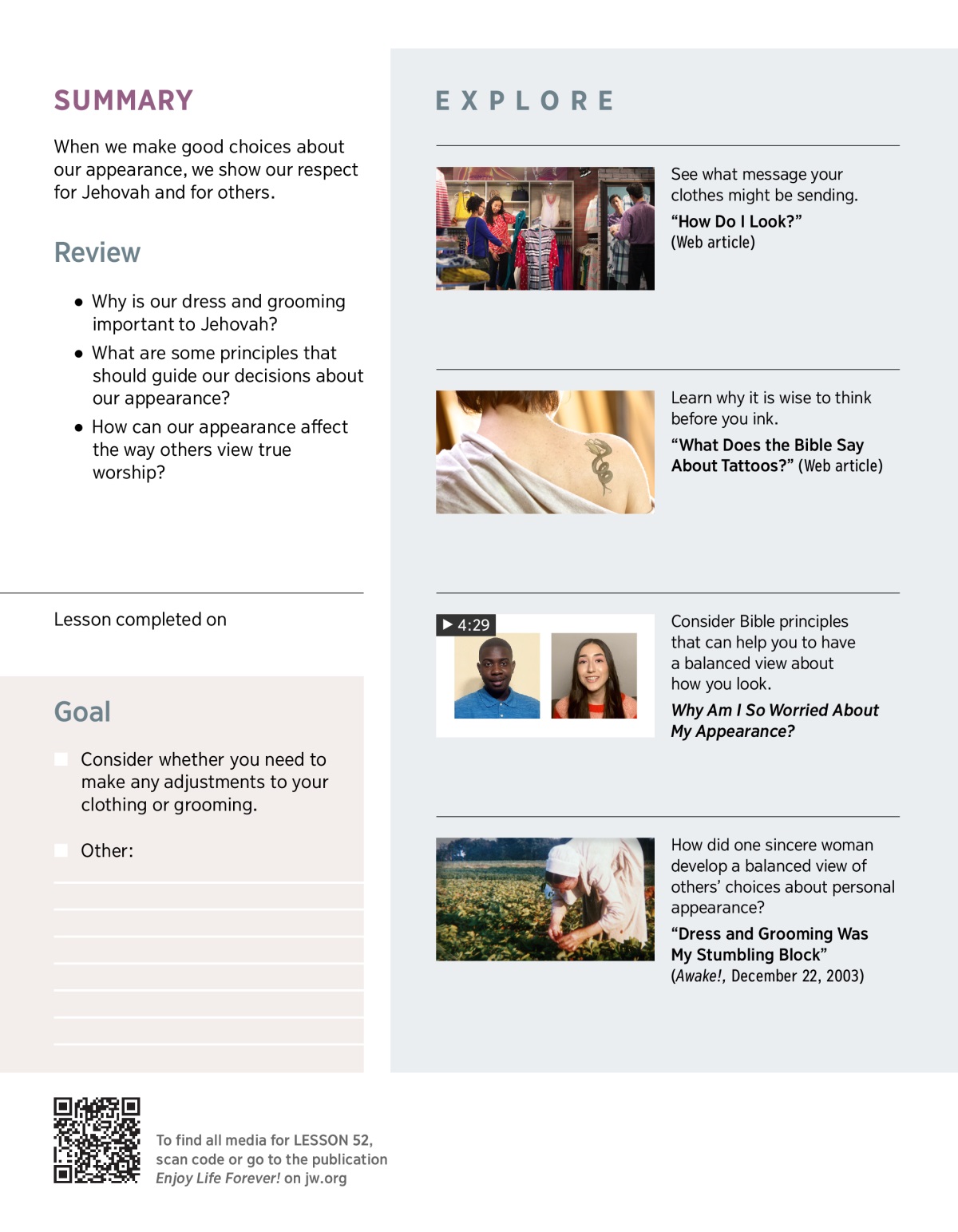 When we make good choices about our appearance, we show our respect for Jehovah and for others.