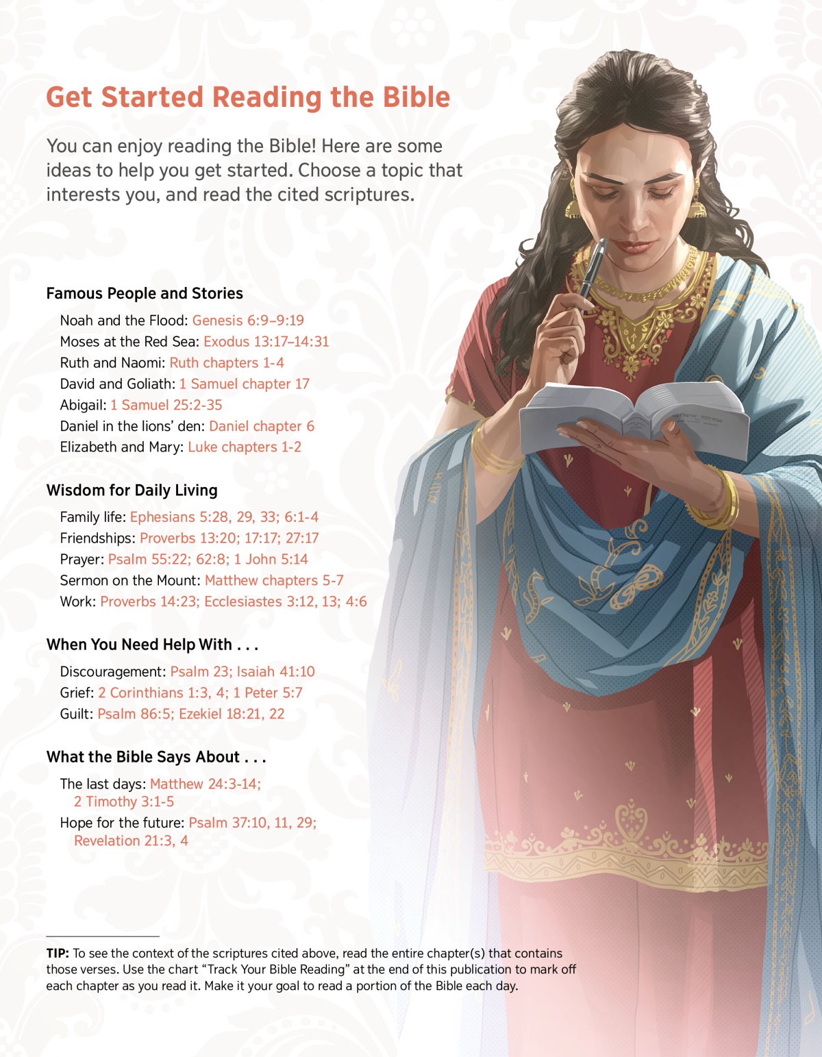 You can enjoy reading the Bible! Here are some ideas to help you get started. Choose a topic that interests you, and read the cited scriptures.