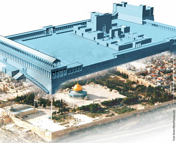 The temple site with a picture of what the temple may have looked like in Jesus’ day
