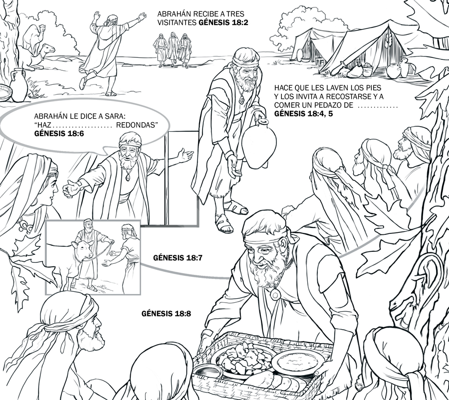 • Colorea los dibujos. • Lee los textos bíblicos, resúmelos y llena la línea de puntos. • Busca las figuras ocultas: 1) una lagartija y 2) un cuchillo.
