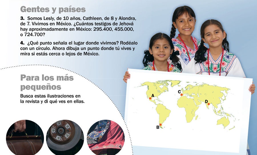 Somos Lesly, de 10 años, Cathleen, de 8 y Alondra, de 7. Vivimos en México. ¿Cuántos testigos de Jehová hay aproximadamente en México: 295.400, 455.000, o 724.700?