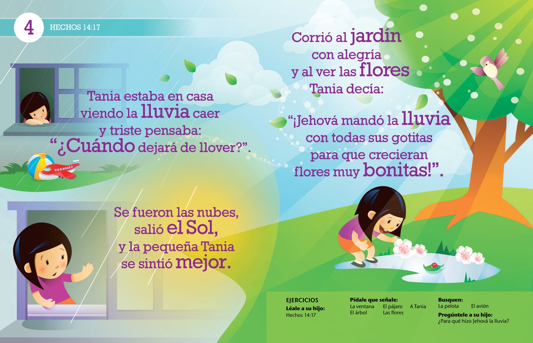 “¡Jehová mandó la lluvia con todas sus gotitas para que crecieran flores muy bonitas!”.