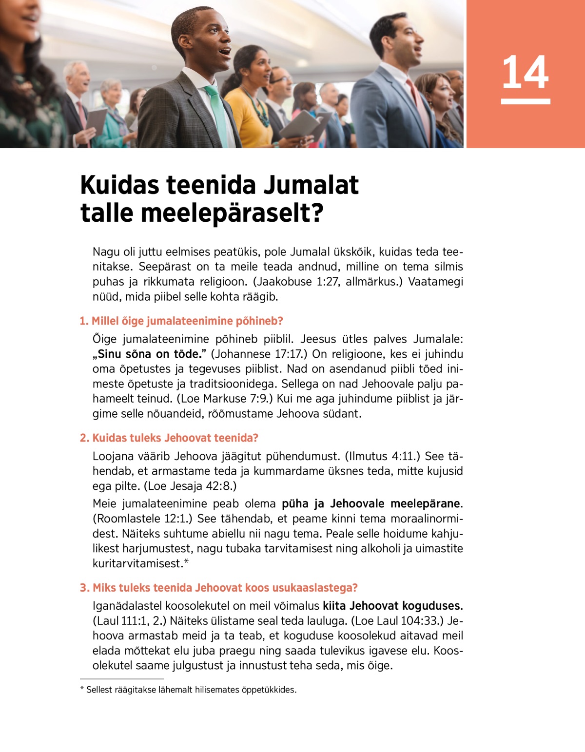Nagu oli juttu eelmises peatükis, pole Jumalal ükskõik, kuidas teda teenitakse. Seepärast on ta meile teada andnud, milline on tema silmis puhas ja rikkumata religioon. (Jaakobuse 1:27, allmärkus.) Vaatamegi nüüd, mida piibel selle kohta räägib.