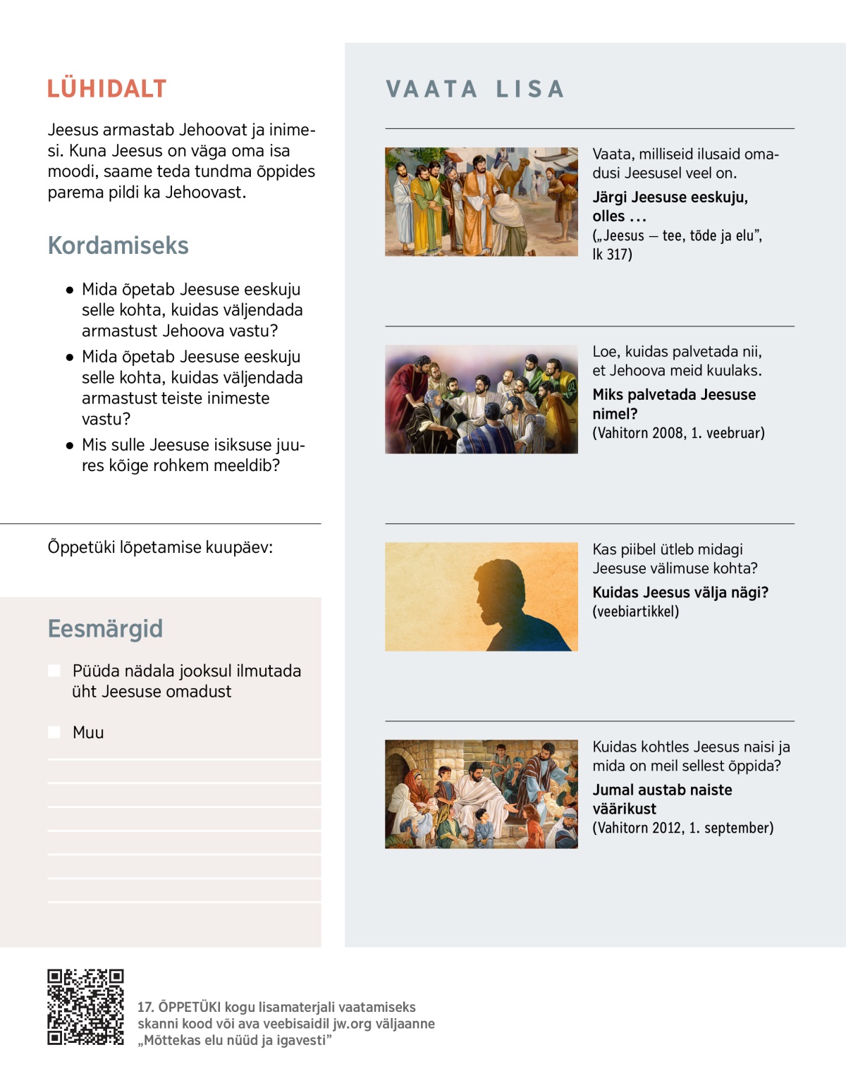 Järgi Jeesuse eeskuju, olles ... („Jeesus – tee, tõde ja elu”, lk 317)