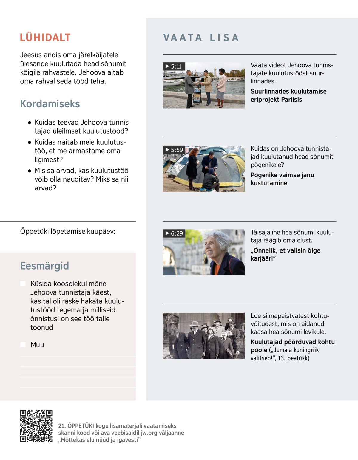 • Mis sulle Jehoova tunnistajate kuulutustöö juures muljet avaldab?