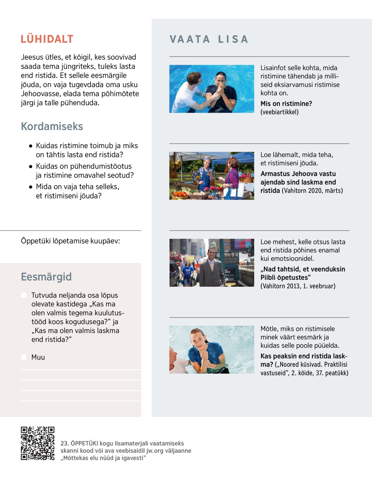 Mõtle, miks on ristimisele minek väärt eesmärk ja kuidas selle poole püüelda.