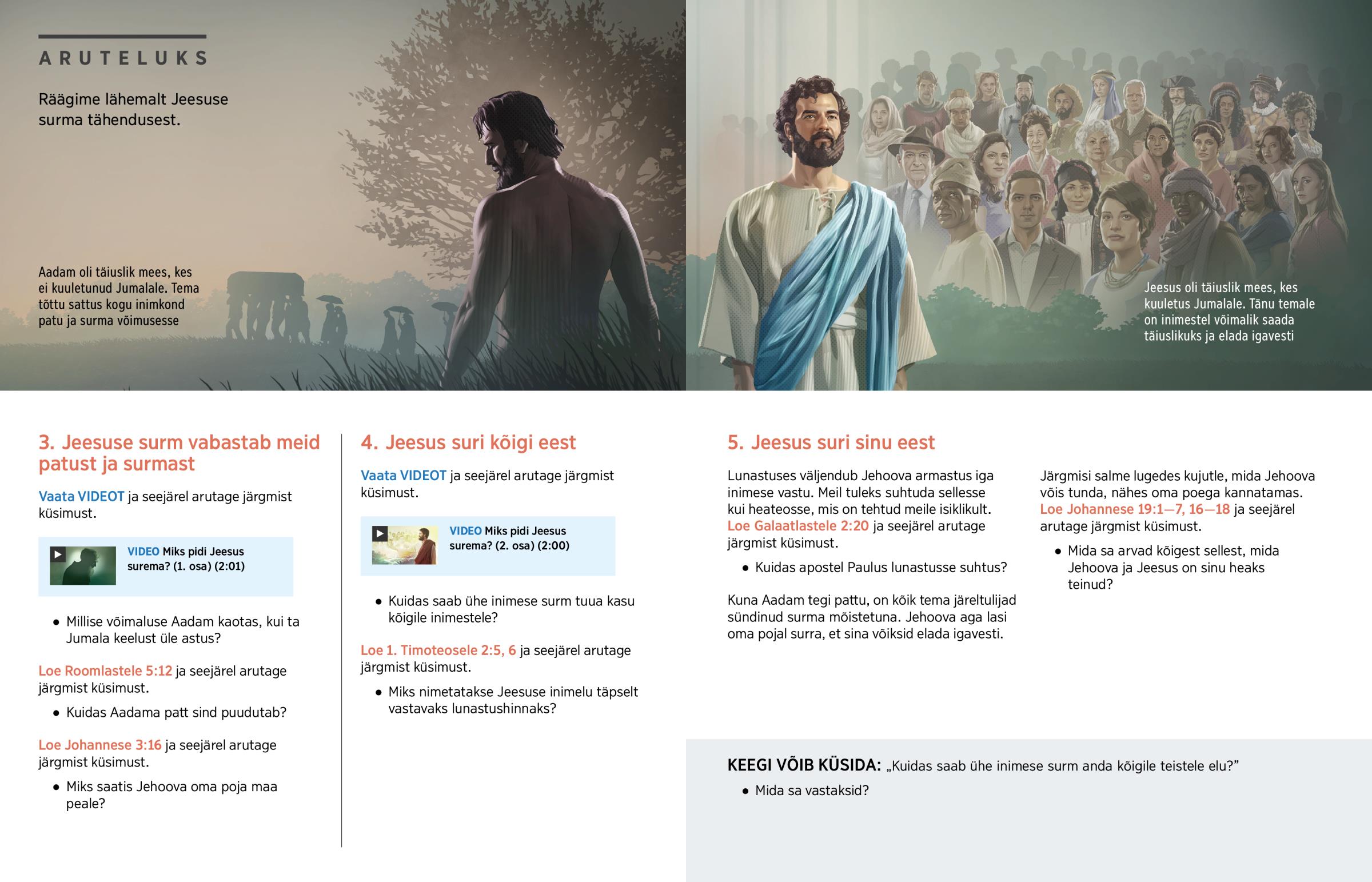 Kuna Aadam tegi pattu, on kõik tema järeltulijad sündinud surma mõistetuna. Jehoova aga lasi oma pojal surra, et sina võiksid elada igavesti.