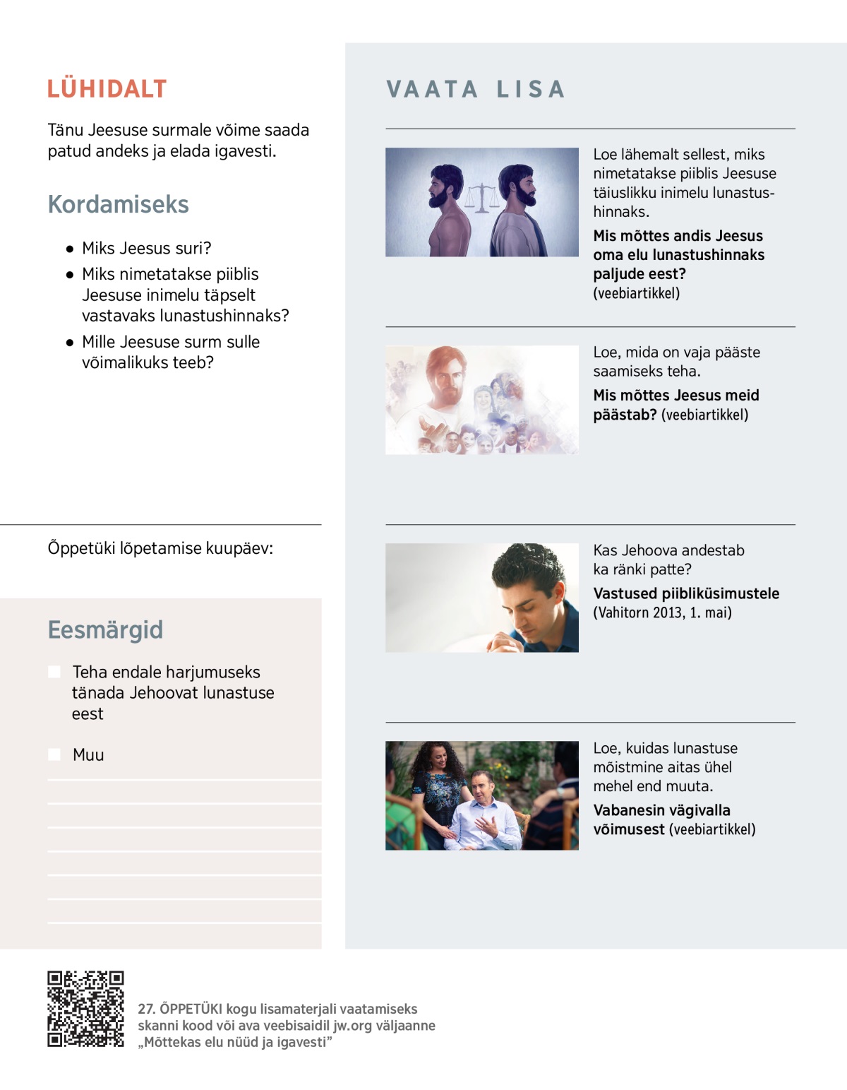 1. Mis on tänu Jeesuse surmale juba praegu võimalik?