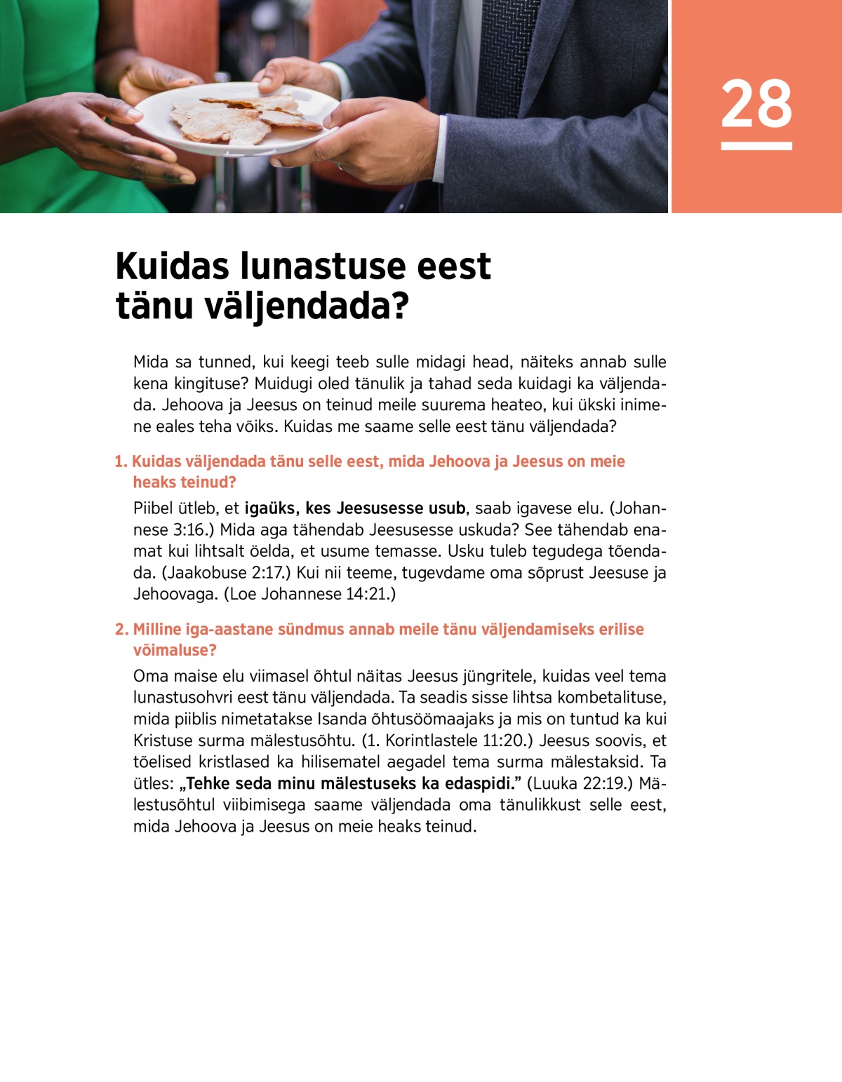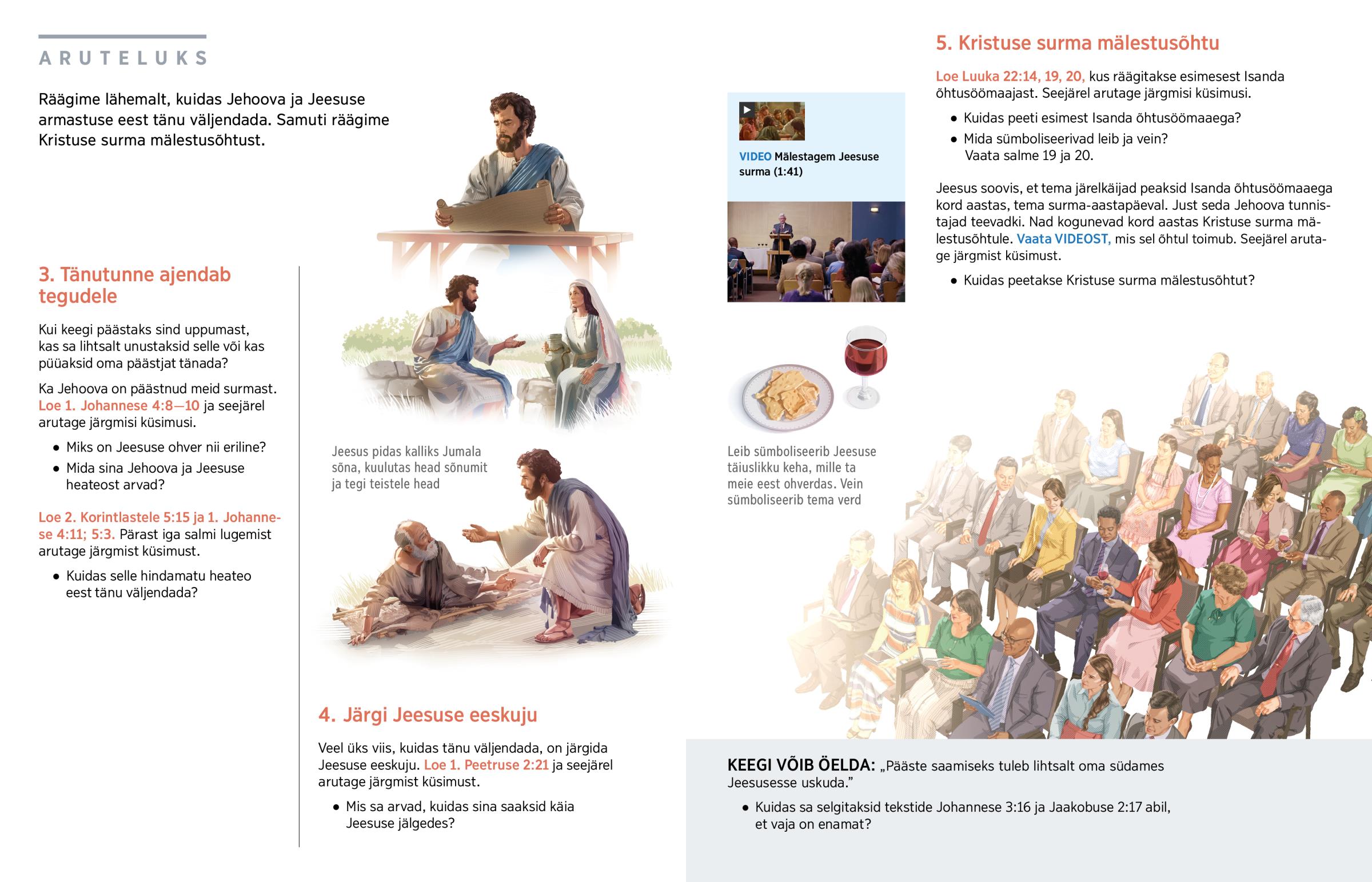 Räägime lähemalt, kuidas Jehoova ja Jeesuse armastuse eest tänu väljendada. Samuti räägime Kristuse surma mälestusõhtust.