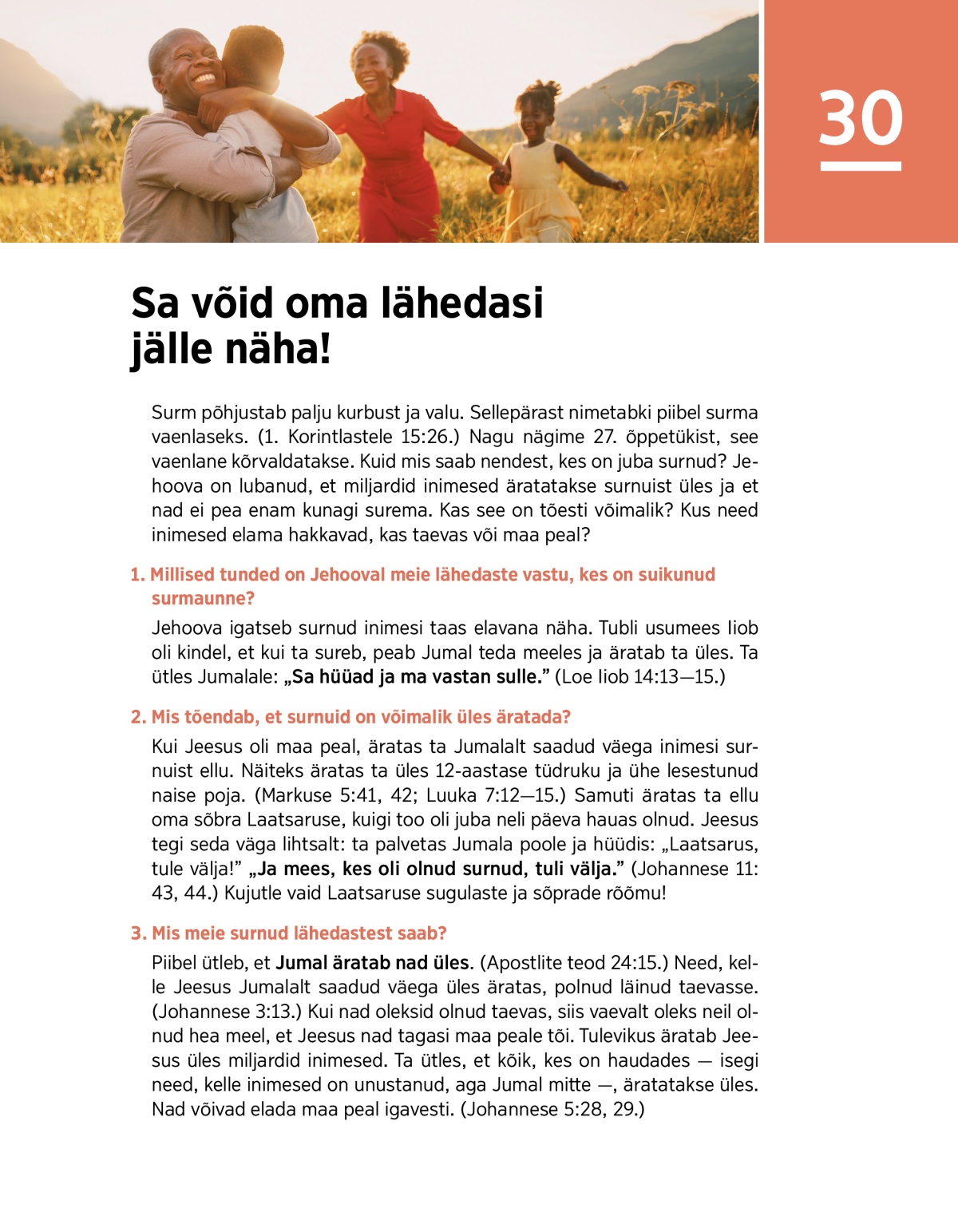 1. Millised tunded on Jehooval meie lähedaste vastu, kes on suikunud surmaunne?