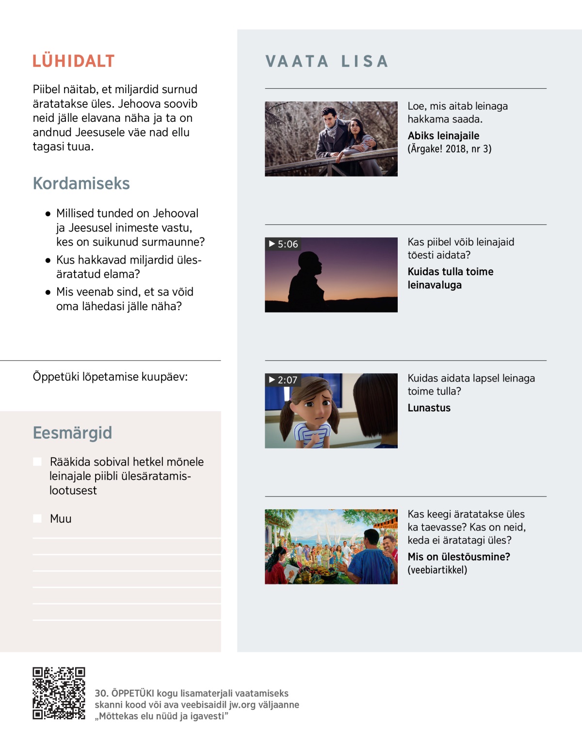 Vaatame, mis tõendab, et surnute ülesäratamine ei ole utoopia. Näeme ka, et ülesäratamislootus on tõeline hingepalsam.