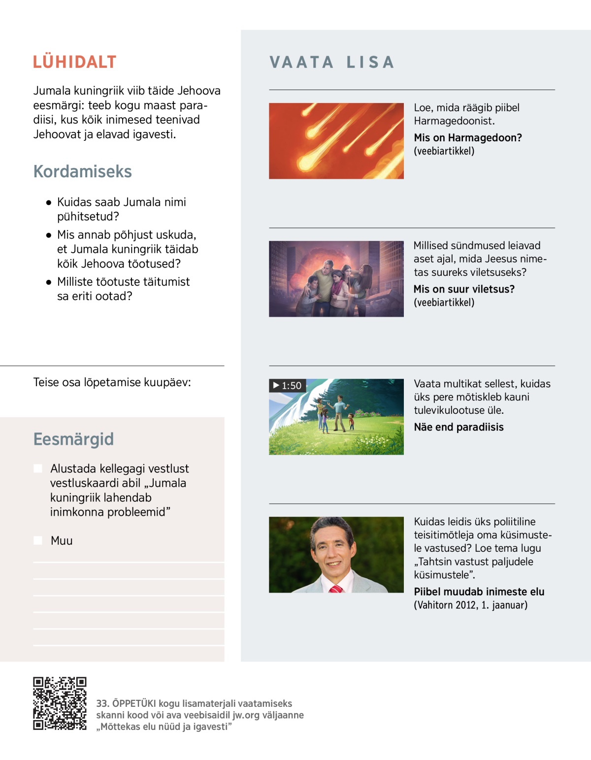 Jumala kuningriik juba valitseb ja peagi hakkab see maa peal tegema suuri ümberkorraldusi. Vaatame, mida head Jumala kuningriik korda saadab.