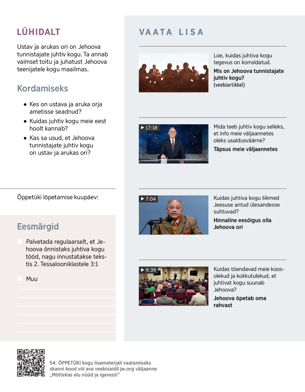 Juhtiv kogu korraldab Jeesuse juhtimisel Jehoova tunnistajate tegevust. Nii oli ka algkristlaste päevil. Vaata VIDEOT.