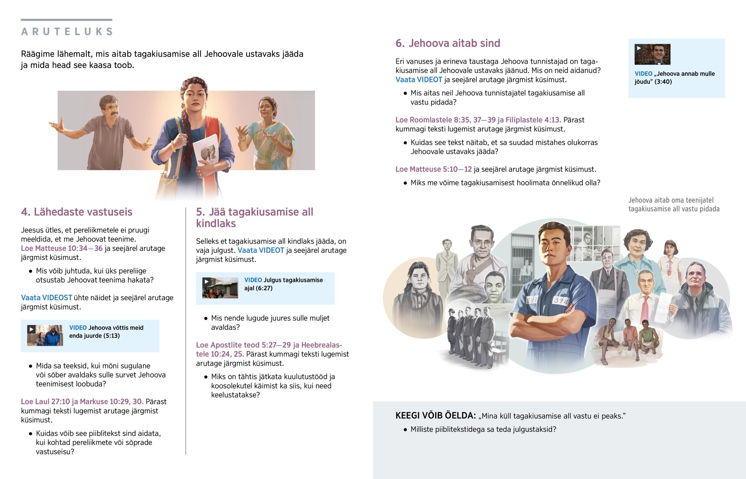 Eri vanuses ja erineva taustaga Jehoova tunnistajad on tagakiusamise all Jehoovale ustavaks jäänud. Mis on neid aidanud? Vaata VIDEOT ja seejärel arutage järgmist küsimust.
