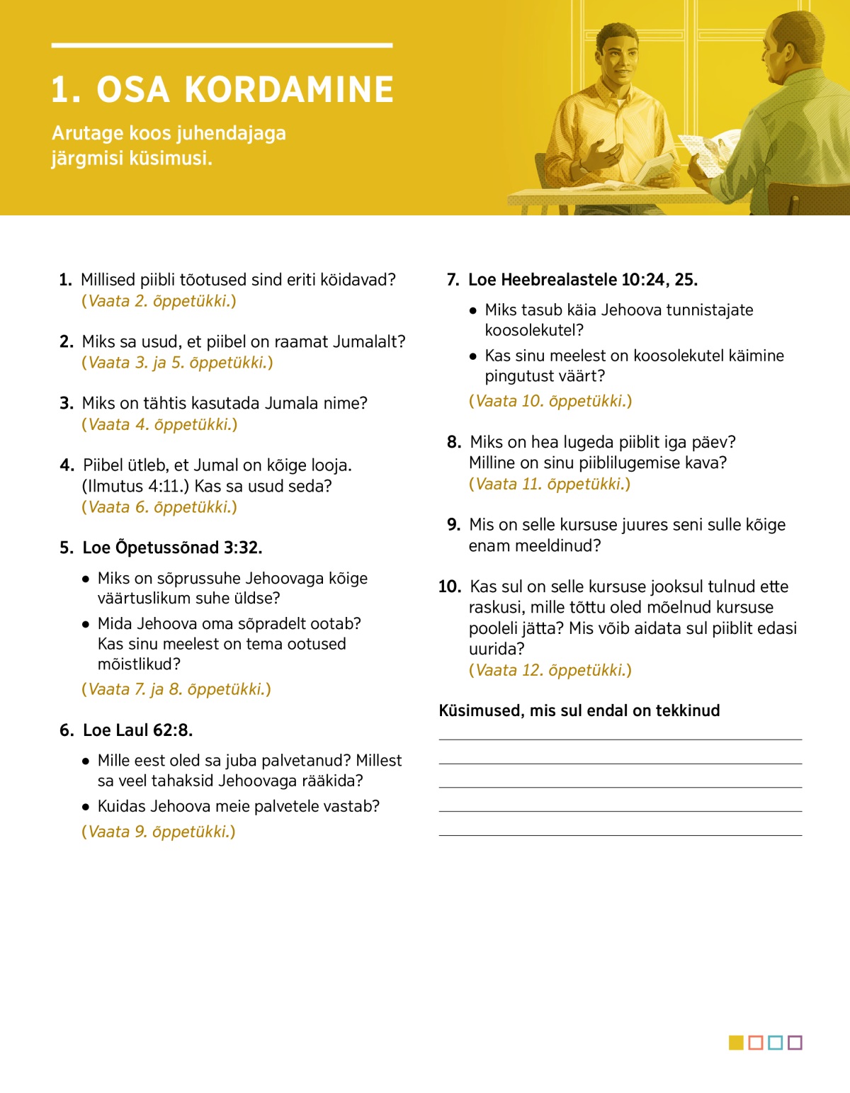 Kas sul on selle kursuse jooksul tulnud ette raskusi, mille tõttu oled mõelnud kursuse pooleli jätta? Mis võib aidata sul piiblit edasi uurida?