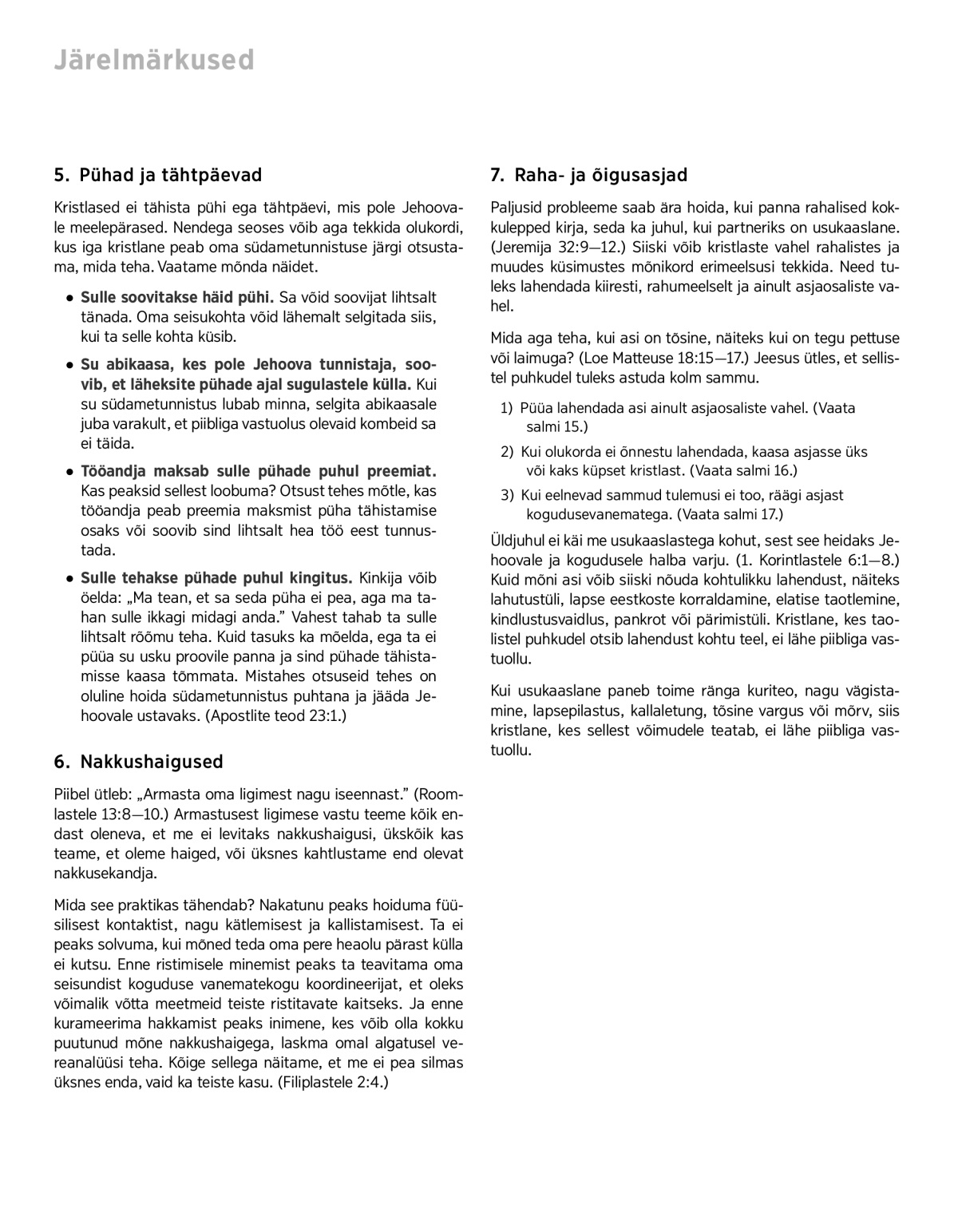 Kui usukaaslane paneb toime ränga kuriteo, nagu vägistamine, lapsepilastus, kallaletung, tõsine vargus või mõrv, siis kristlane, kes sellest võimudele teatab, ei lähe piibliga vastuollu.