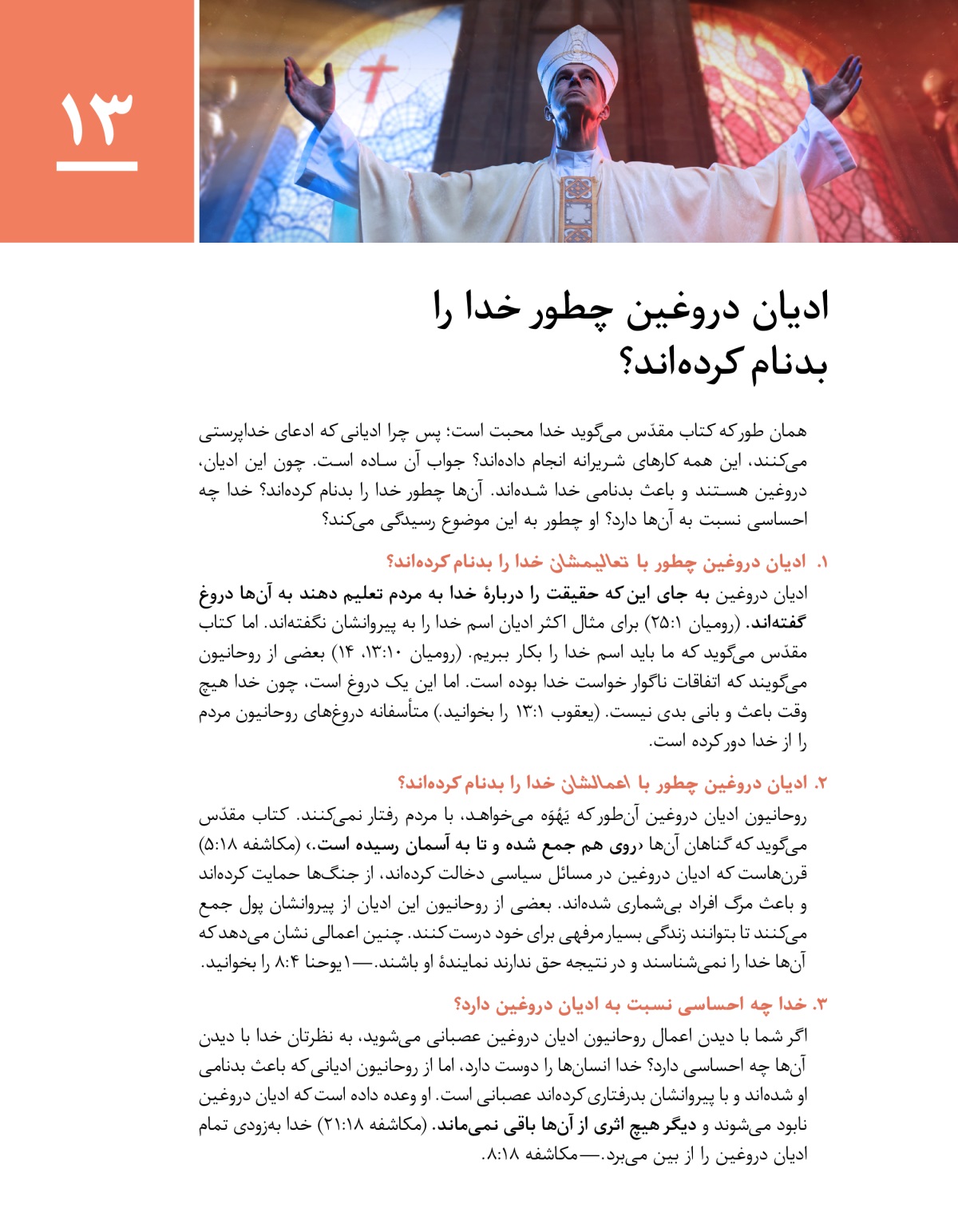ادیان دروغین با تعالیم نادرست و اعمال بدشان خدا را بدنام کردهاند. خدا این ادیان را نابود خواهد کرد.