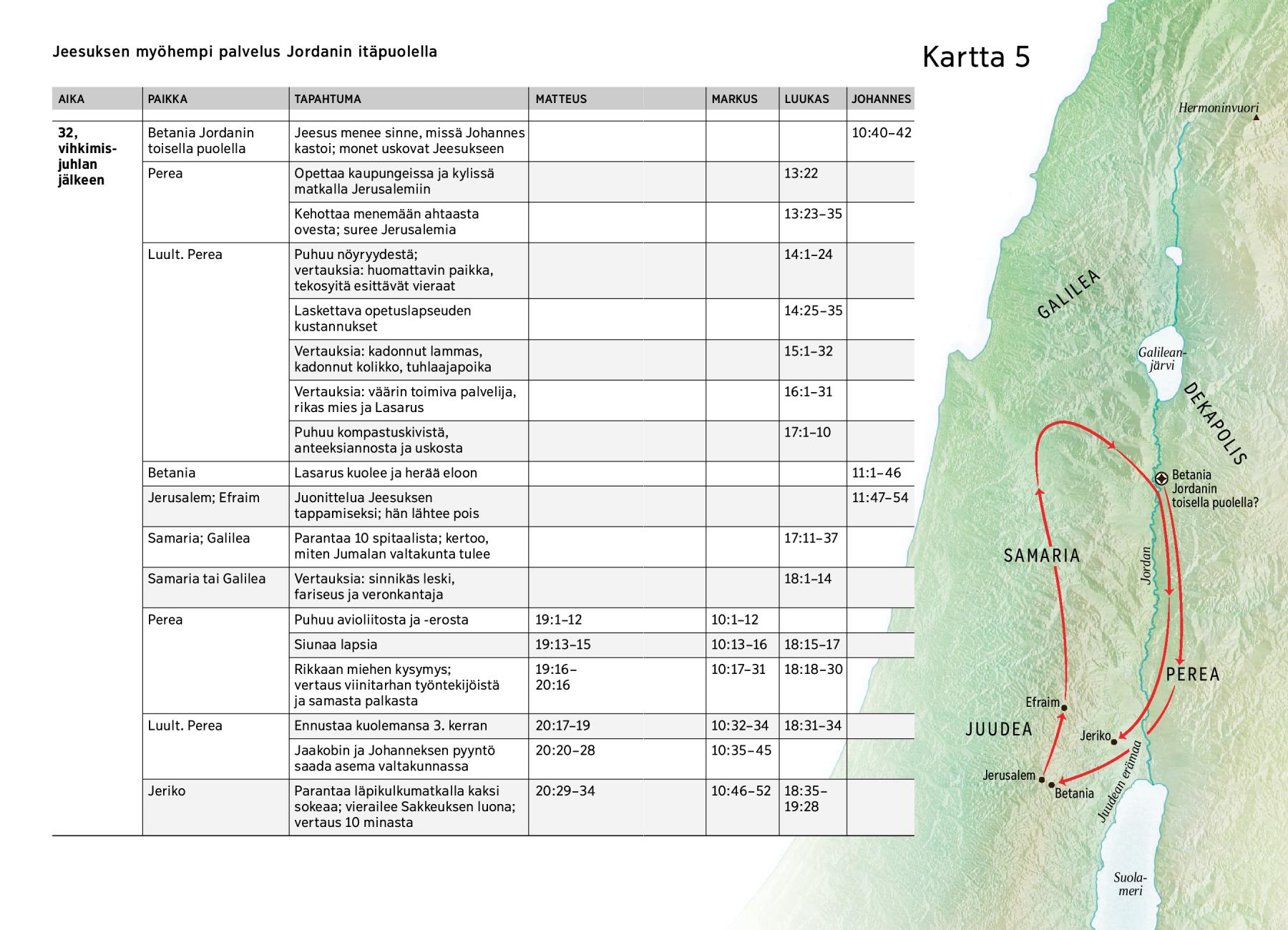 Jeesuksen maanpäällisen elämän tärkeimmät tapahtumat: Jeesuksen myöhempi palvelus Jordanin itäpuolella