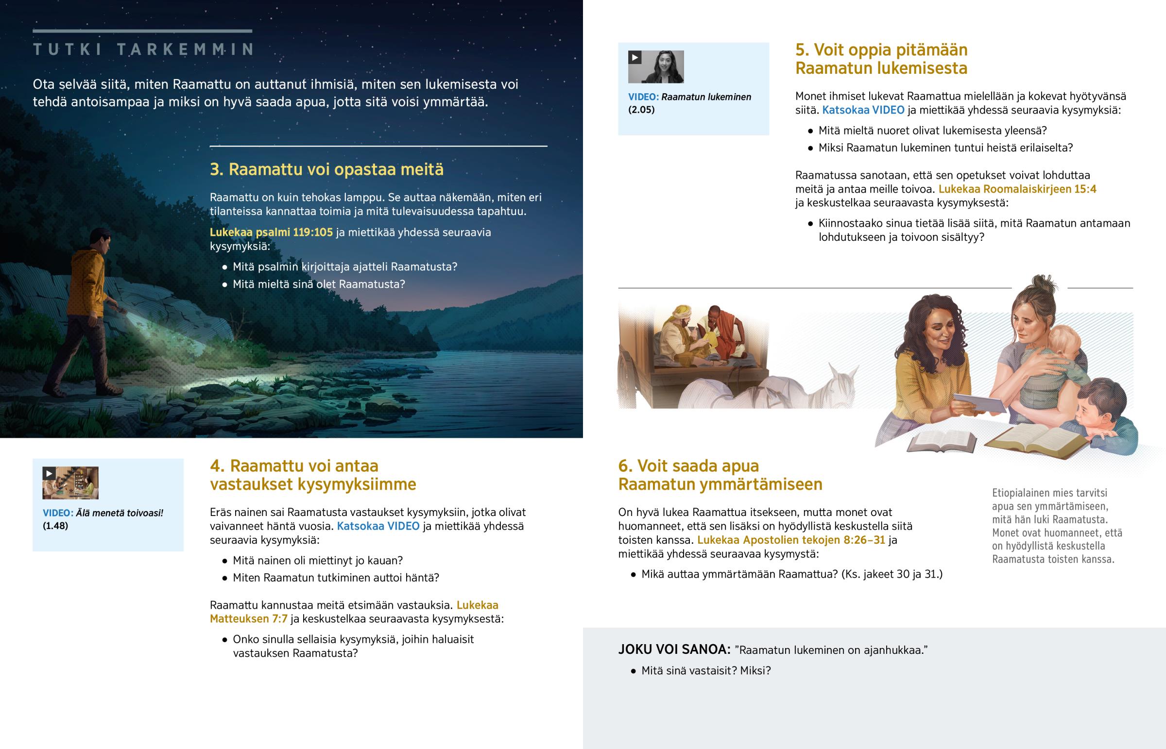Ota selvää siitä, miten Raamattu on auttanut ihmisiä, miten sen lukemisesta voi tehdä antoisampaa ja miksi on hyvä saada apua, jotta sitä voisi ymmärtää.