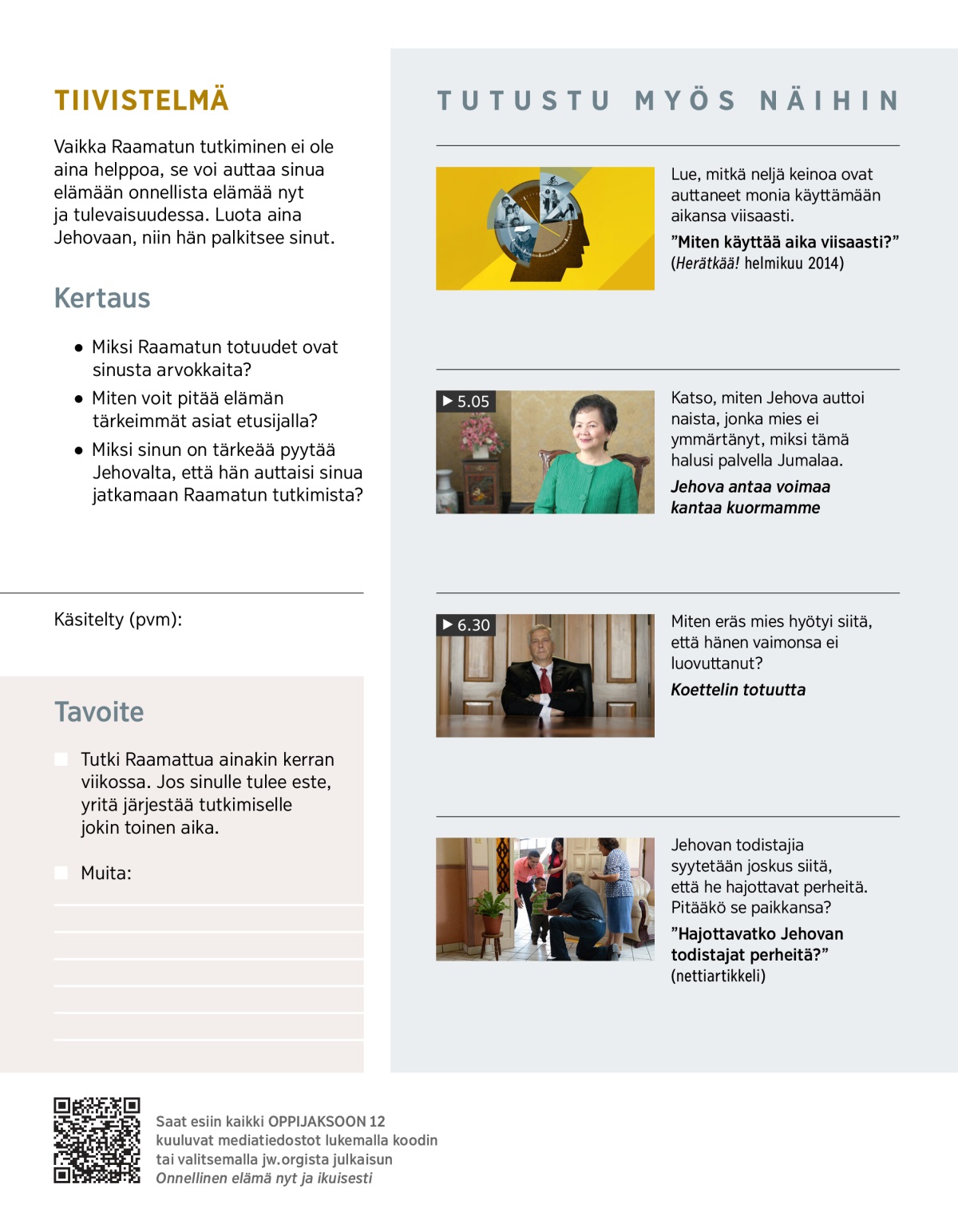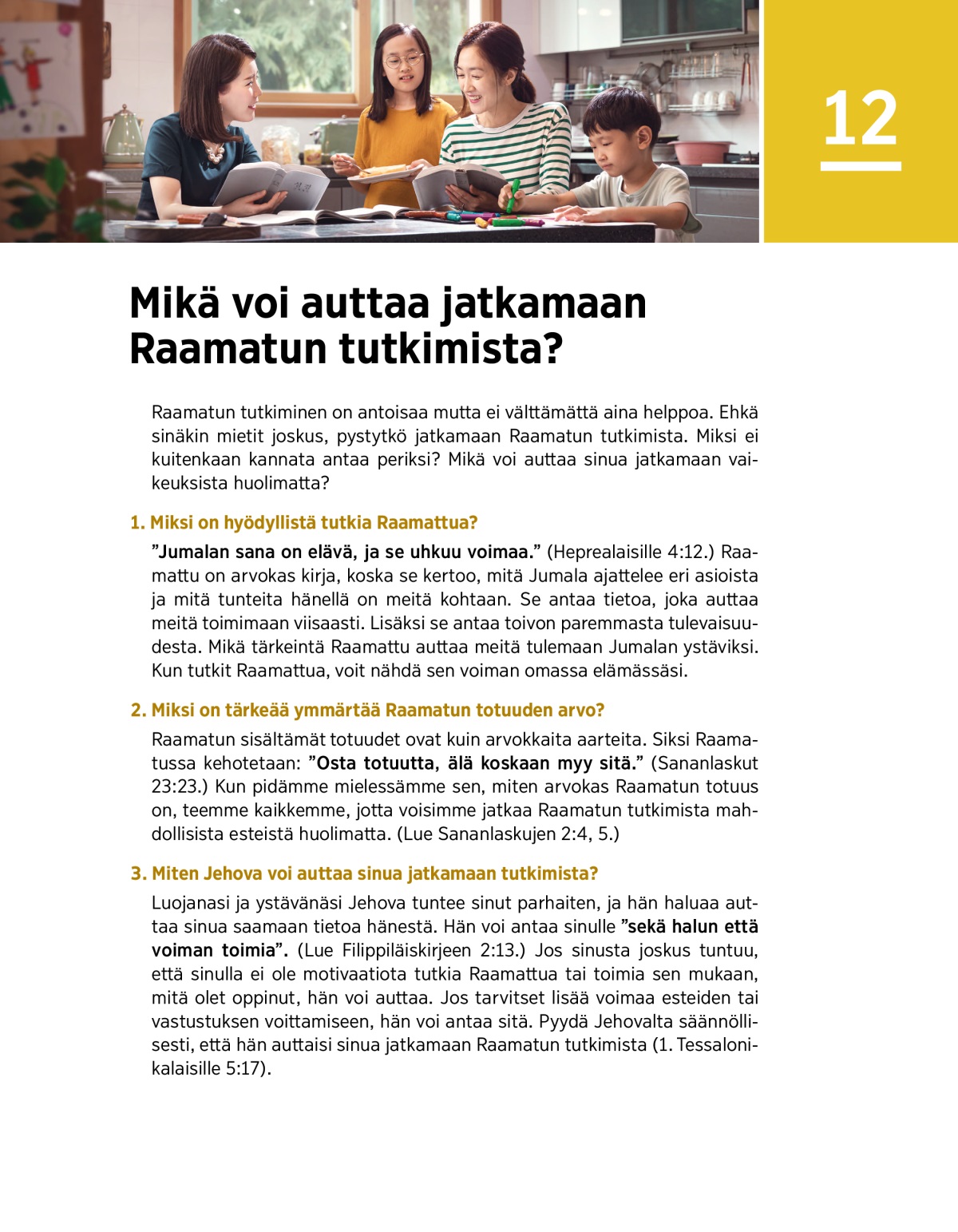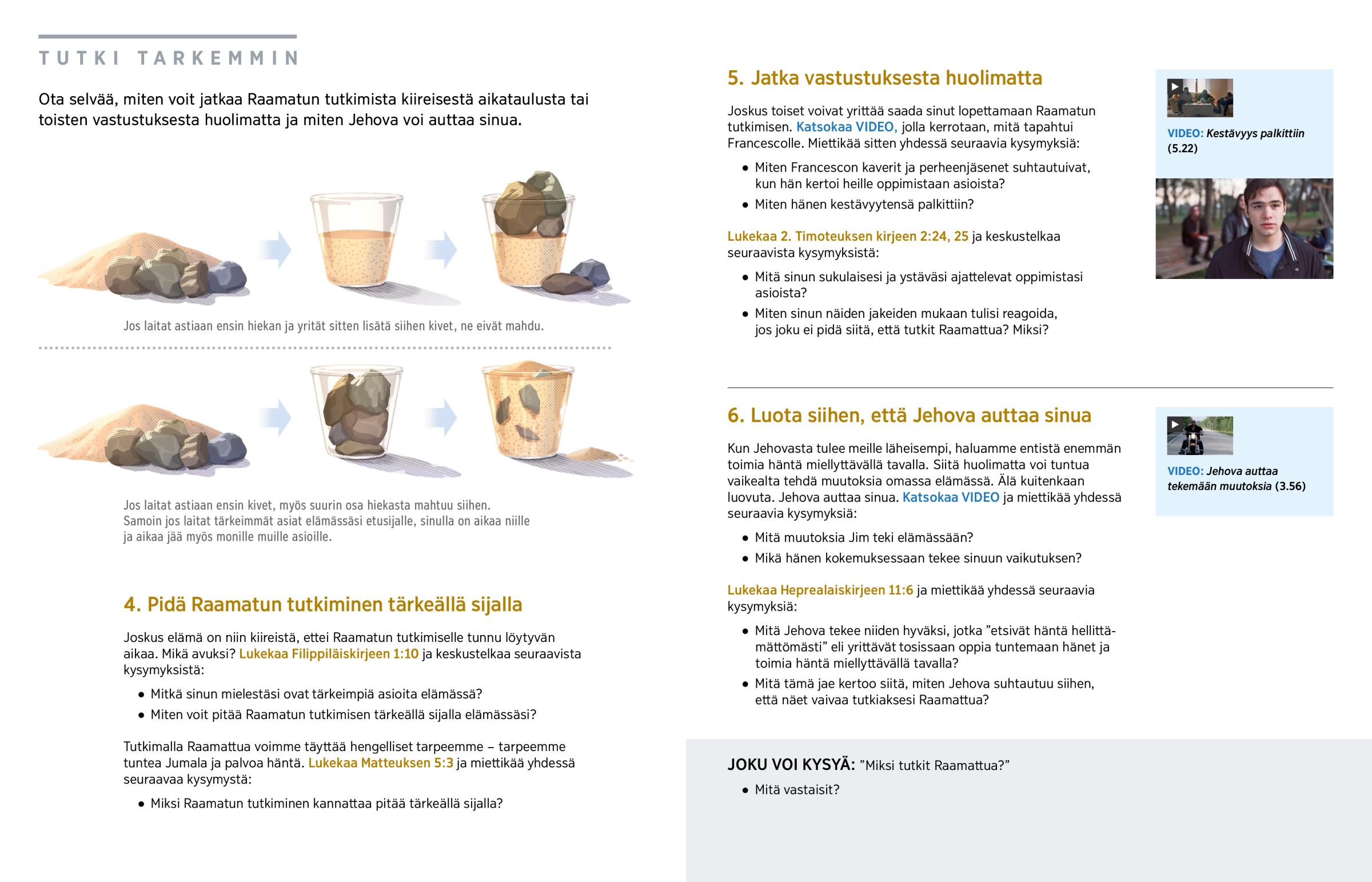 Raamatun tutkiminen on antoisaa mutta ei välttämättä aina helppoa. Ehkä sinäkin mietit joskus, pystytkö jatkamaan Raamatun tutkimista. Miksi ei kuitenkaan kannata antaa periksi? Mikä voi auttaa sinua jatkamaan vaikeuksista huolimatta?
