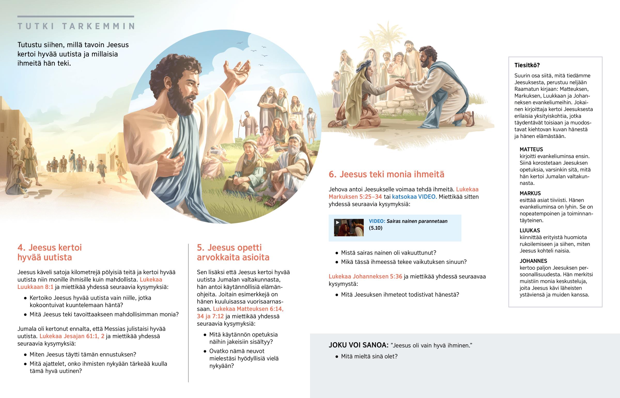 Tutustu siihen, millä tavoin Jeesus kertoi hyvää uutista ja millaisia ihmeitä hän teki.