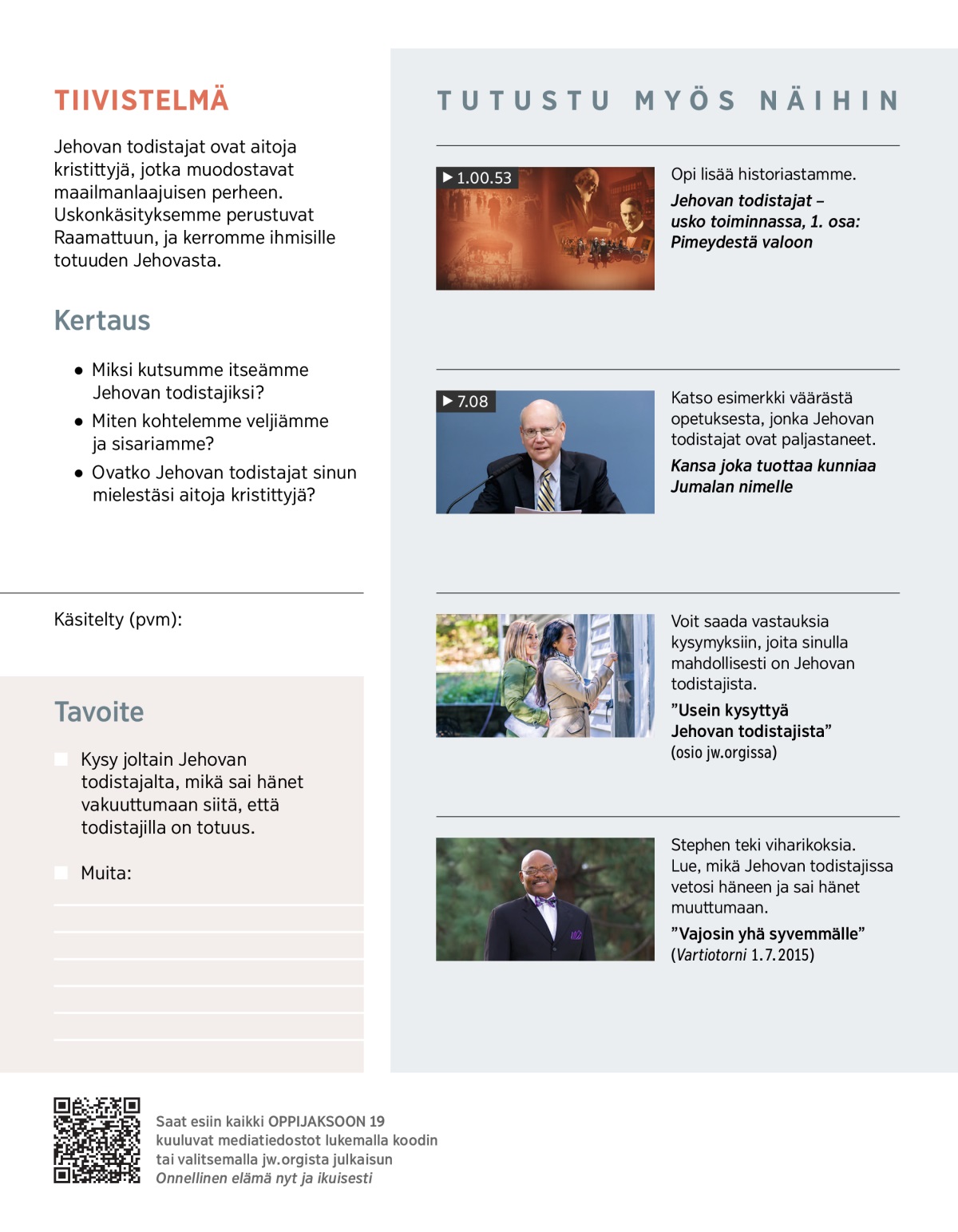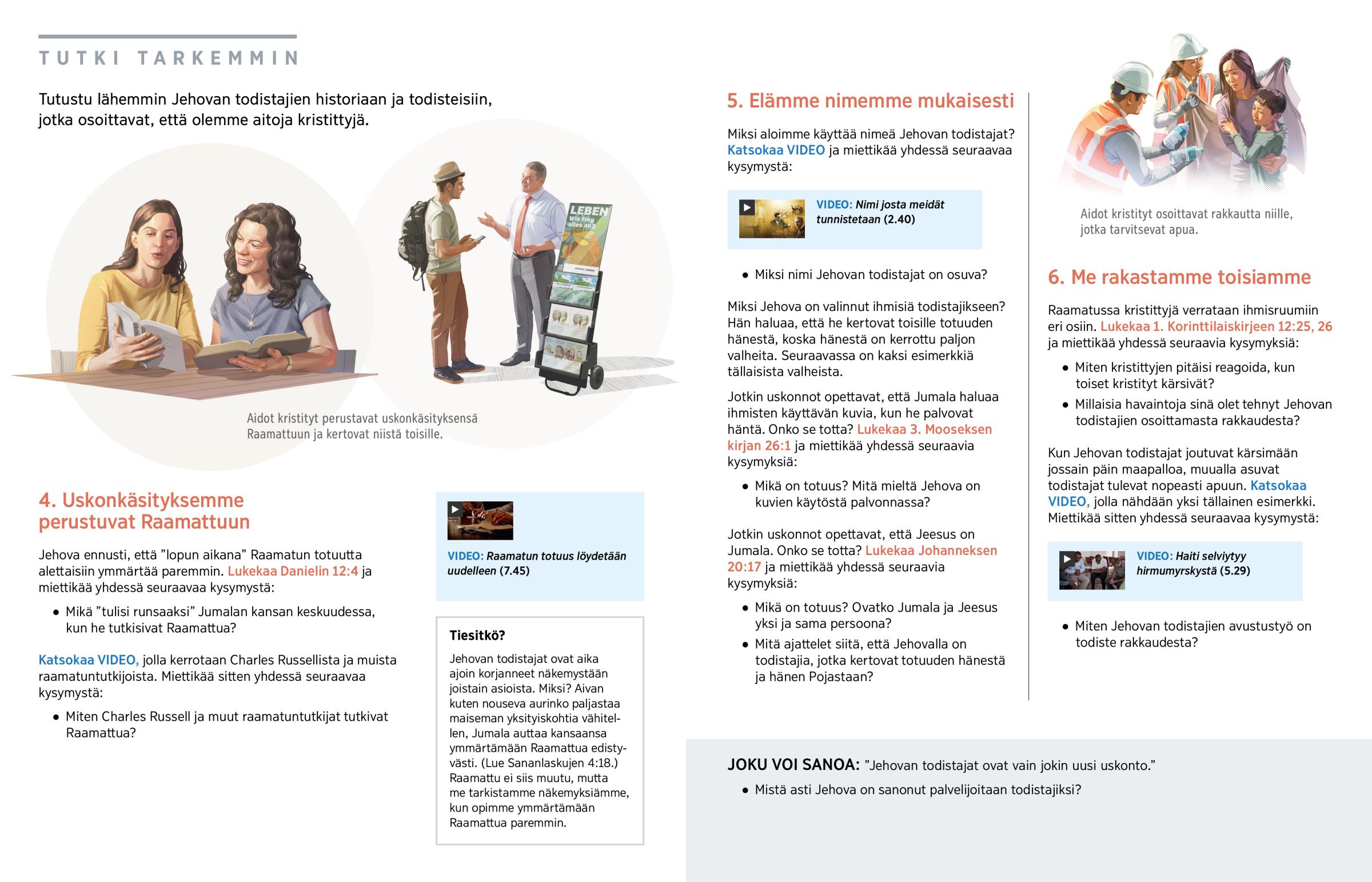 Jehovan todistajat uskovat olevansa aitoja kristittyjä. Tässä oppijaksossa tarkastellaan sitä, mihin uskonkäsityksemme perustuvat, mitä nimemme Jehovan todistajat kertoo meistä ja miten osoitamme, että rakastamme toisiamme.
