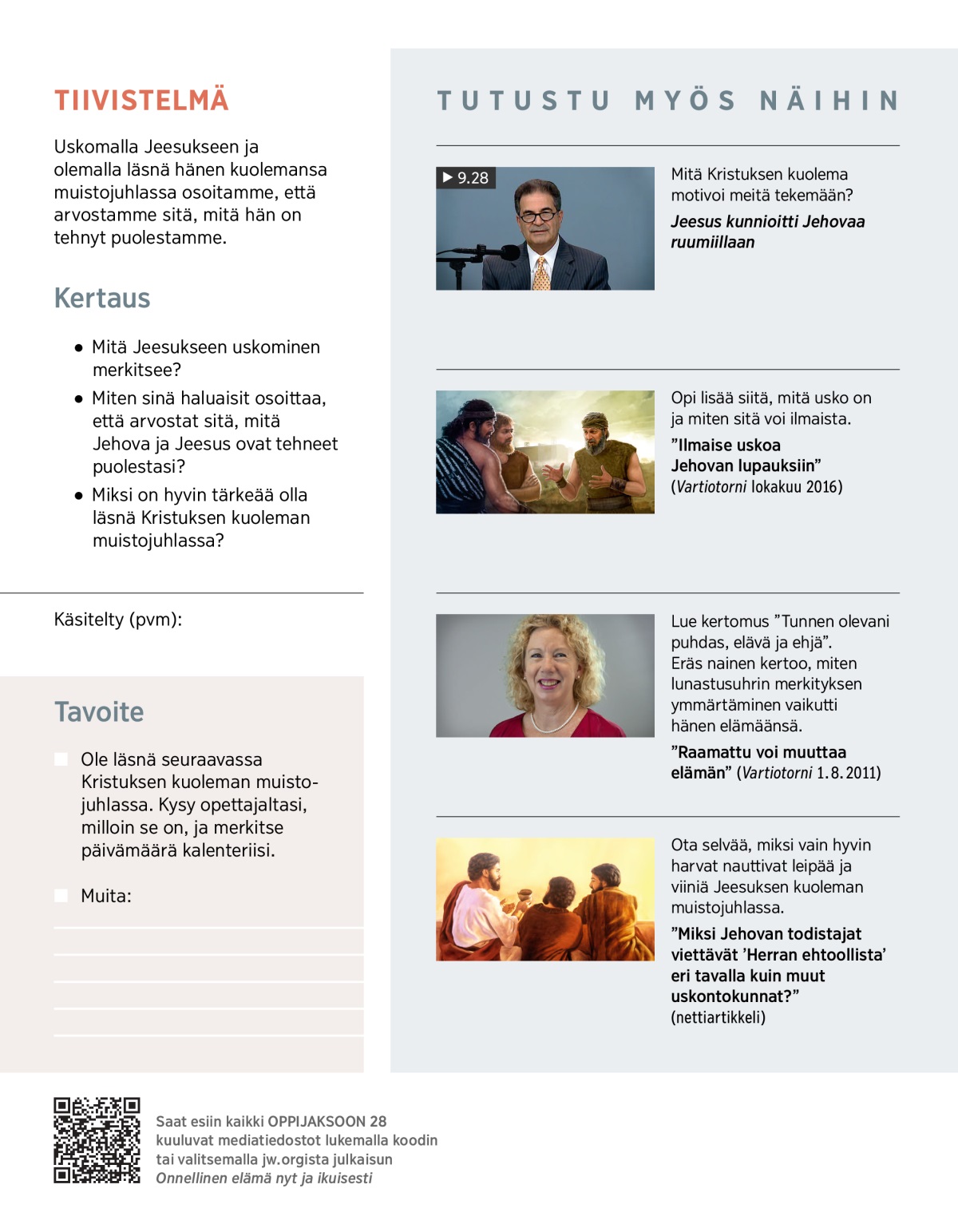 5. Ole läsnä Kristuksen kuoleman muistojuhlassa