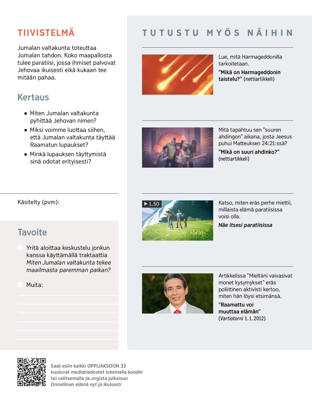 1. Miten Jumalan valtakunta tuo rauhan ja oikeudenmukaisuuden maan päälle?