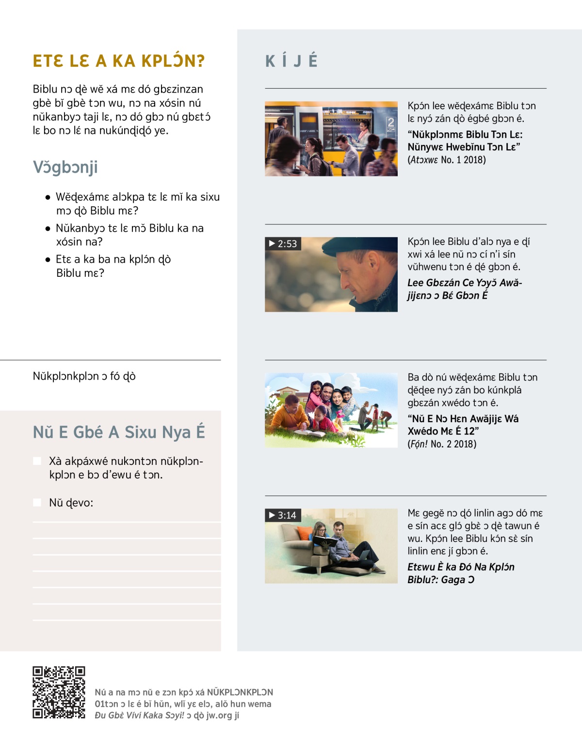 “Nǔkplɔnmɛ Biblu Tɔn Lɛ: Nǔnywɛ Hwebǐnu Tɔn Lɛ” (Atɔxwɛ No. 1 2018)