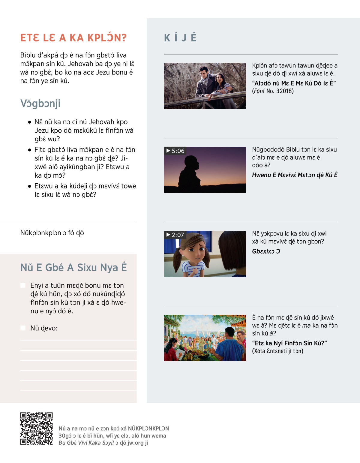 Kplɔ́n nǔ e wu mǐ sixu ɖeji ɖɔ Jezu ɖó hlɔnhlɔn bo na fɔ́n mɛ sín kú, lobo ka na bló mɔ̌ é ɖò Biblu mɛ. Kplɔ́n lee fínfɔ́n sín kú sixu dó gbɔ nú we gbɔn é kpo lee é sixu na nukúnɖiɖó we gbɔn é kpo.