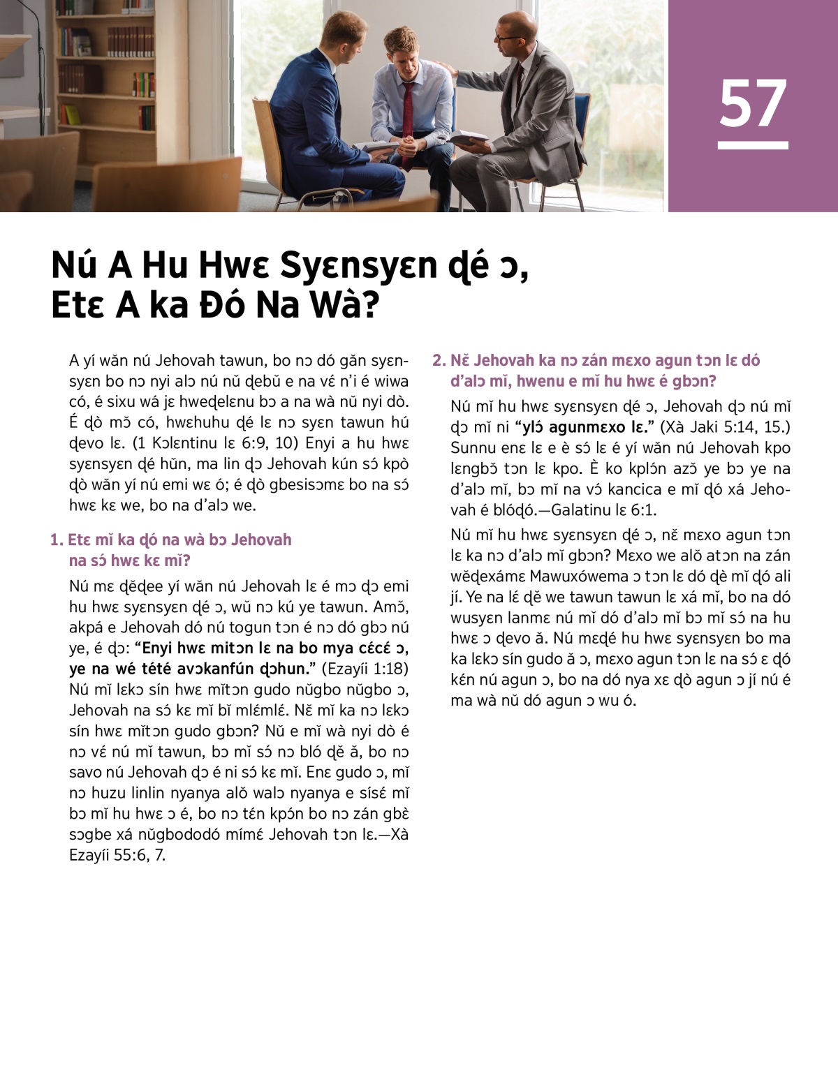 Nú mǐ hu hwɛ syɛnsyɛn ɖé, b’ɛ ka vɛ́ nú mǐ nǔgbo nǔgbo, lobɔ mǐ kánɖeji bo ma sɔ́ na lɛ́ vɔ́ nǔ ɖokpo ɔ wà nyi dò ɖě ǎ ɔ, Jehovah na sɔ́ kɛ mǐ.