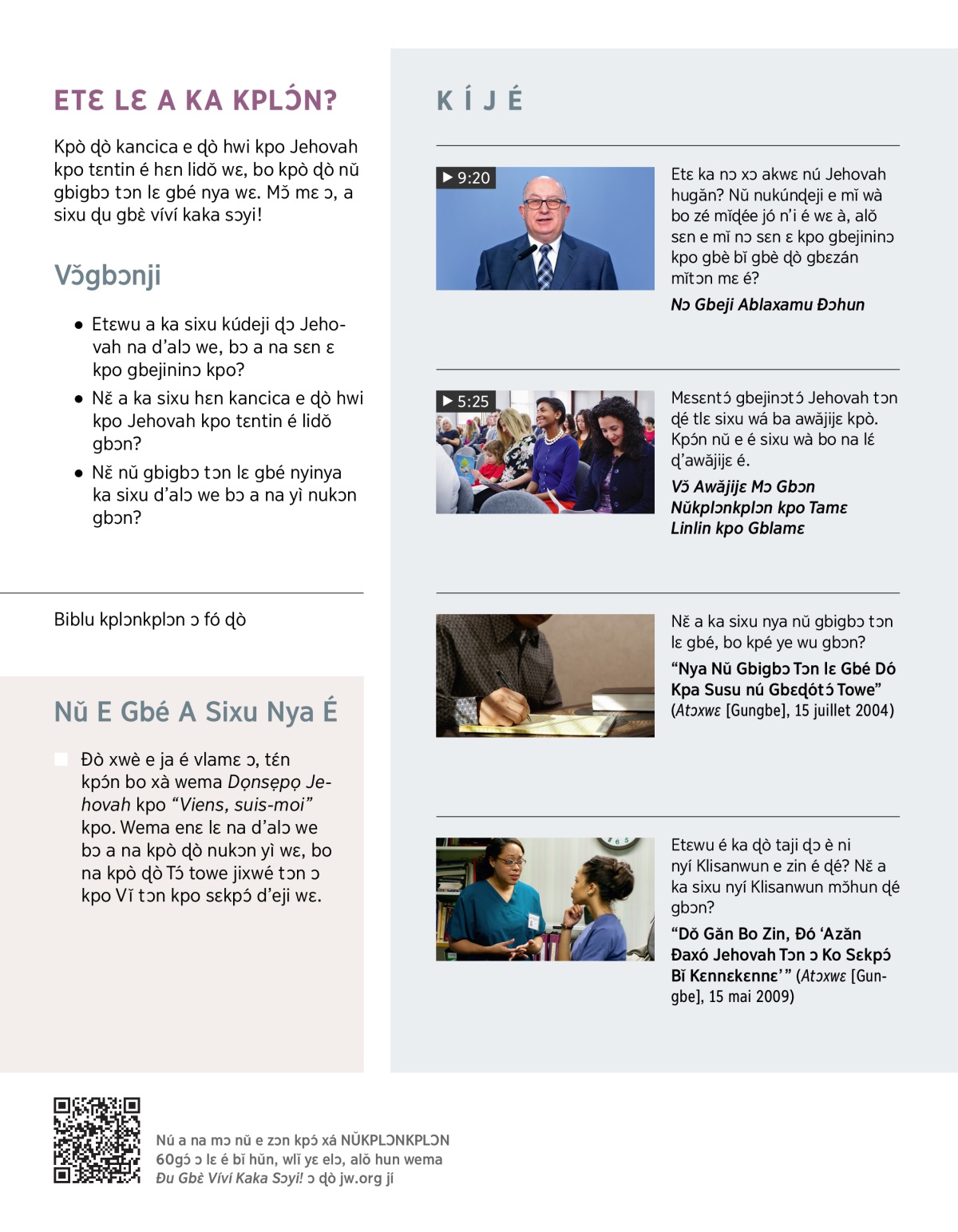 “Dǒ Gǎn Bo Zin, Ðó ‘Azǎn Ðaxó Jehovah Tɔn ɔ Ko Sɛkpɔ́ Bǐ Kɛnnɛkɛnnɛ’” (Atɔxwɛ [Gungbe], 15 mai 2009)