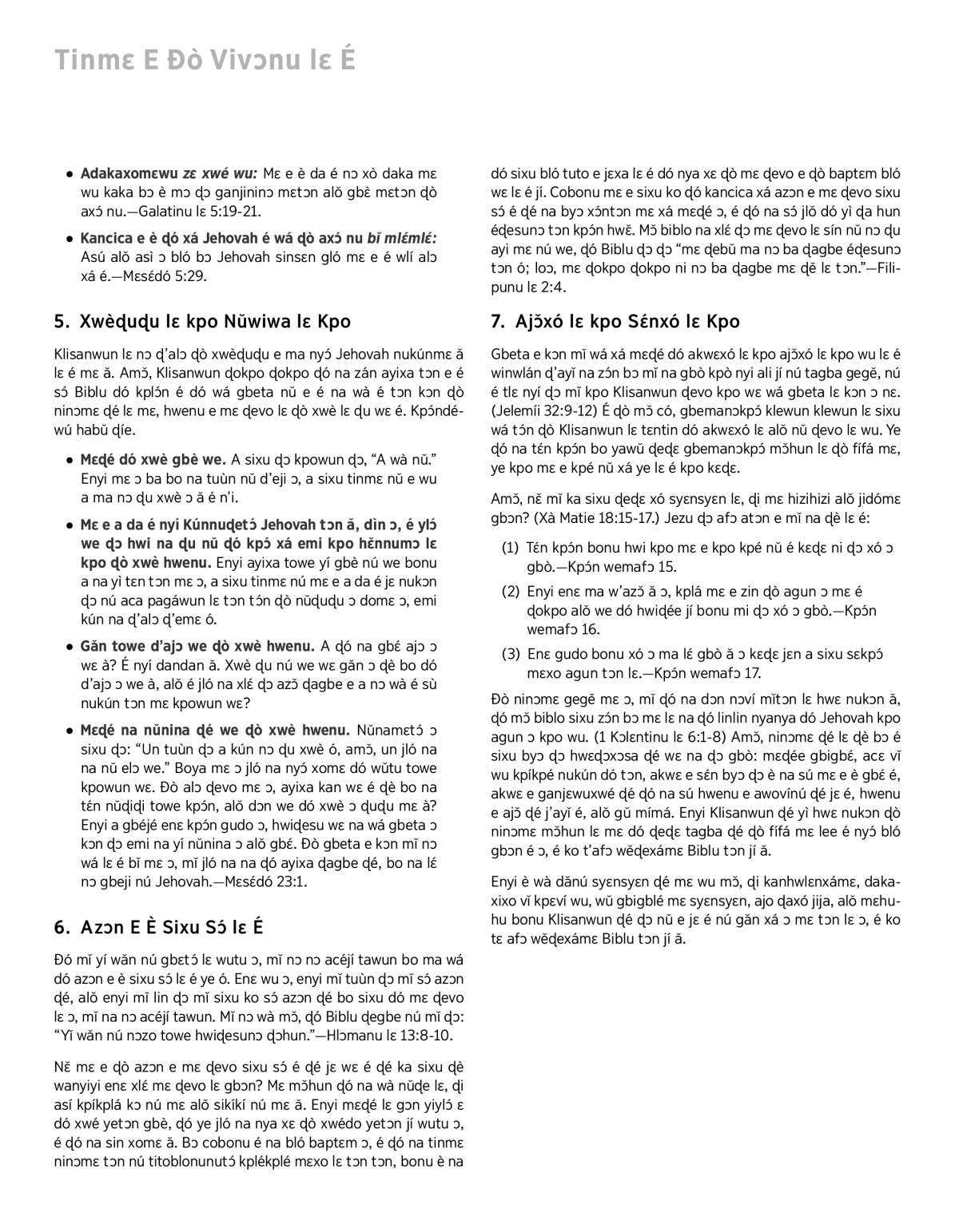 Enyi è wà dǎnú syɛnsyɛn ɖé mɛ wu mɔ̌, ɖi kanhwlɛnxámɛ, dakaxixo vǐ kpɛví wu, wǔ gbigblé mɛ syɛnsyɛn, ajo ɖaxó jija, alǒ mɛhuhu bonu Klisanwun ɖé ɖɔ nǔ e jɛ é nú gǎn xá ɔ mɛ tɔn lɛ ɔ, é ko tɛ afɔ wěɖexámɛ Biblu tɔn jí ǎ.