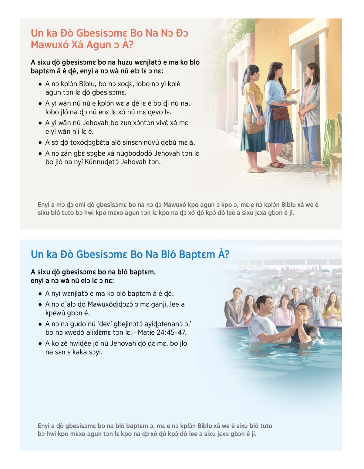 Enyi a ɖò gbesisɔmɛ bo na bló baptɛm ɔ, mɛ e nɔ kplɔ́n Biblu xá we é sixu bló tuto bɔ hwi kpo mɛxo agun tɔn lɛ kpo na ɖɔ xó ɖó kpɔ́ dó lee a sixu jɛxa gbɔn é jí.