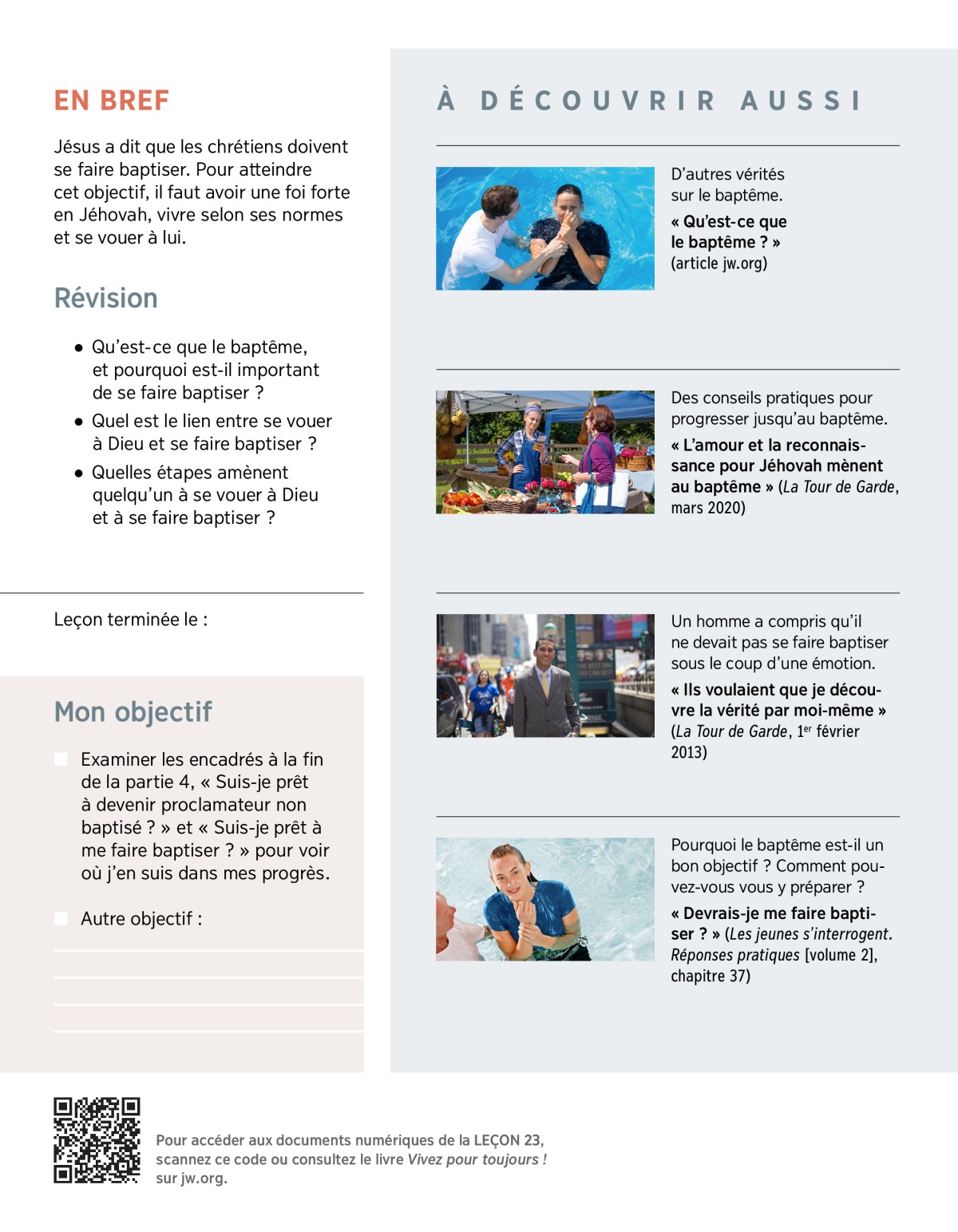 « L’amour et la reconnaissance pour Jéhovah mènent au baptême » (La Tour de Garde, mars 2020)