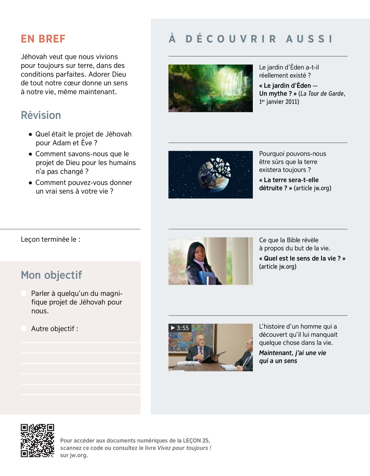 Notre vie ne ressemble pas à cela aujourd’huia, mais le projet de Dieu n’a pas changé (Isaïe 46:10, 11). Jéhovah veut toujours que les humains obéissants vivent éternellement dans des conditions idéales (lire Révélation 21:3, 4).