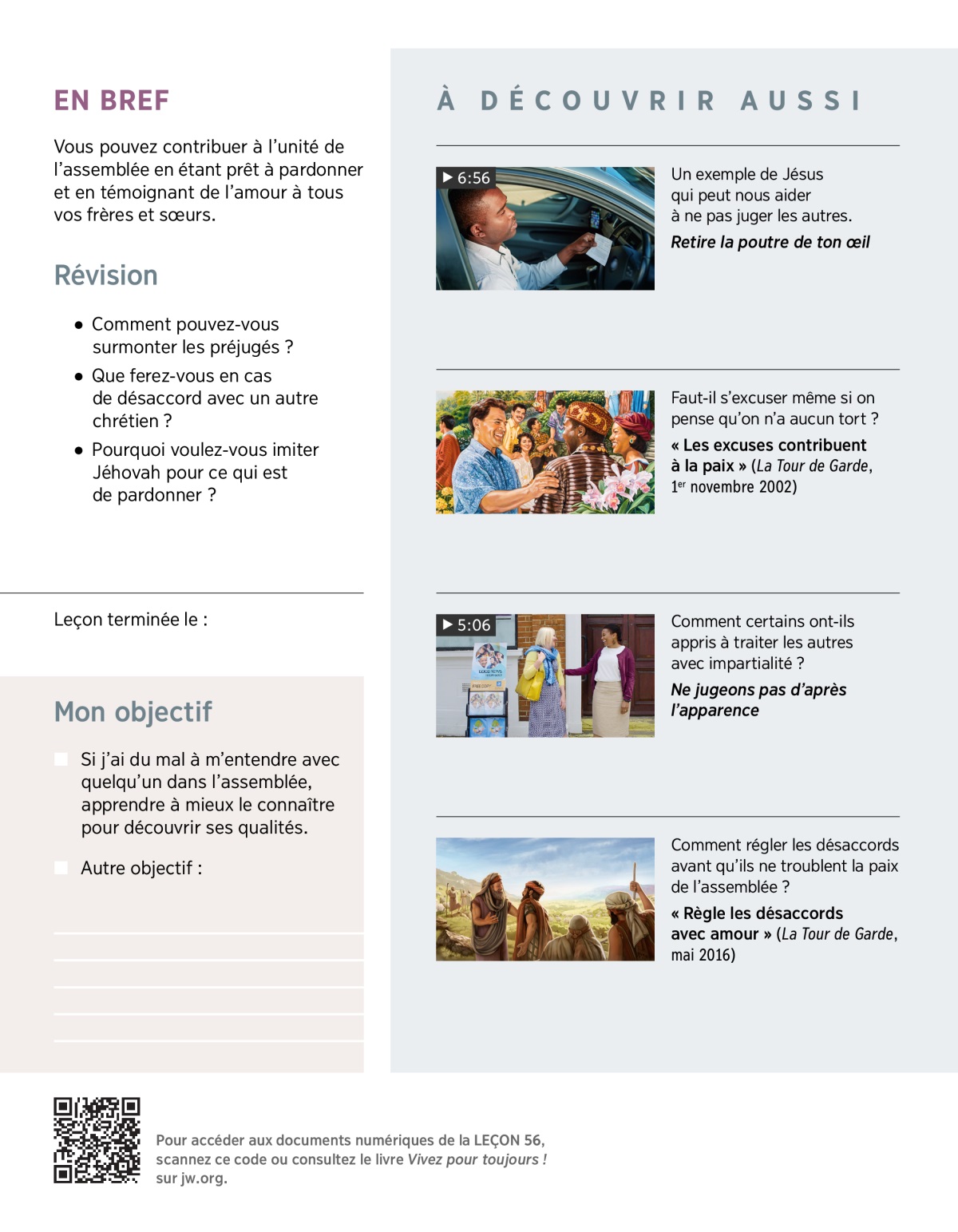 Nous voulons aimer tous nos frères et sœurs. Mais ce n’est pas toujours facile d’accepter quelqu’un qui n’est pas comme nous. Qu’est-ce qui peut nous y aider ? Lire Actes 10:34, 35 et discuter de ces questions :