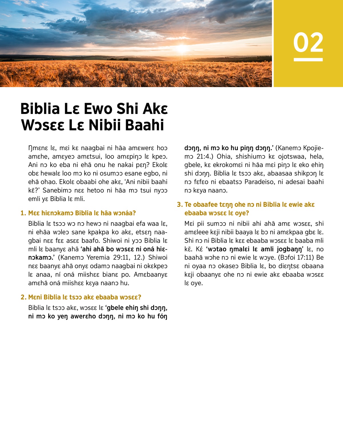 “Kɛ́ Ooye Hela Ko Ni Ehiii Tsamɔ Lɛ, Ani Biblia Lɛ Baanyɛ Aye Abua Bo?” (jw.org lɛ nɔ sane)