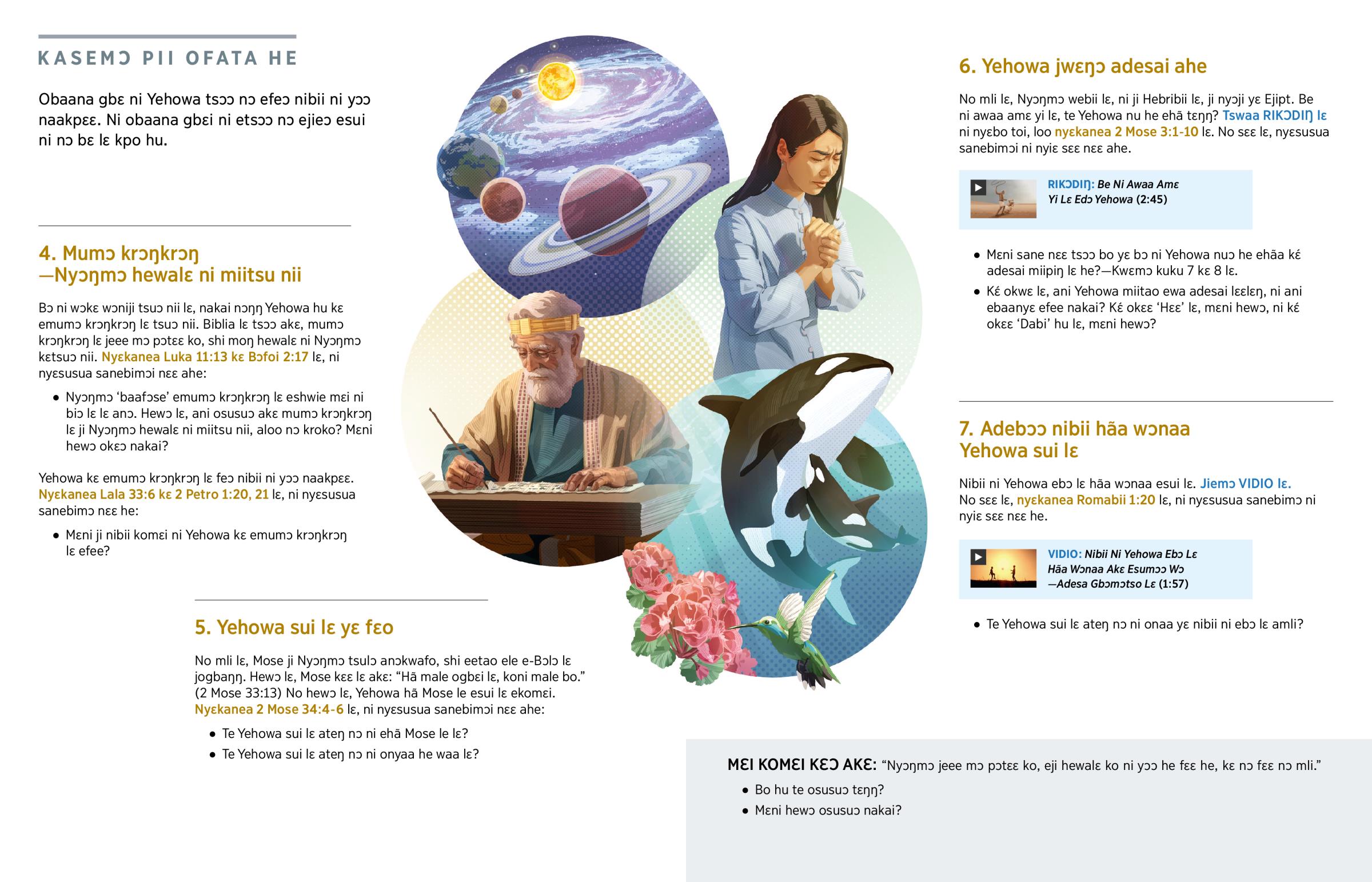 Mɛni sane nɛɛ tsɔɔ bo yɛ bɔ ni Yehowa nuɔ he ehãa kɛ́ adesai miipiŋ lɛ he?—Kwɛmɔ kuku 7 kɛ 8 lɛ.