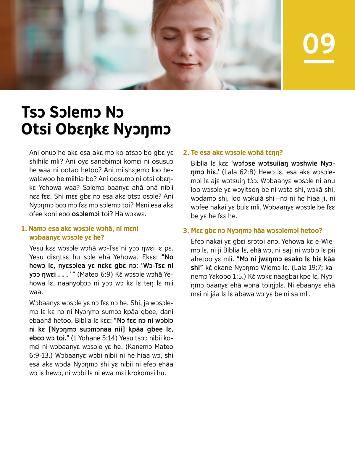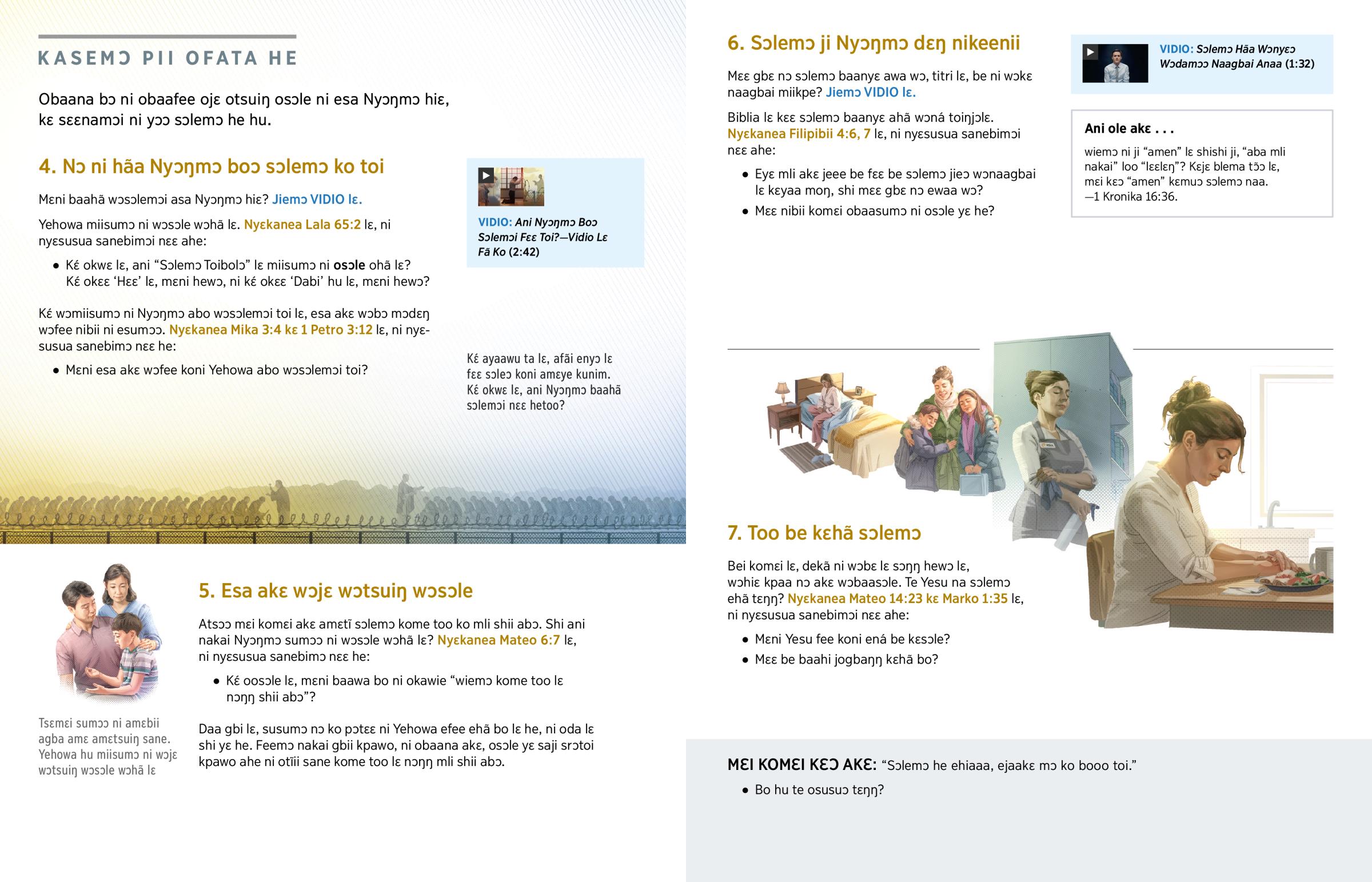 Kɛ́ wɔmiisumɔ ni Nyɔŋmɔ abo wɔsɔlemɔi toi lɛ, esa akɛ wɔbɔ mɔdɛŋ wɔfee nibii ni esumɔɔ. Nyɛkanea Mika 3:4 kɛ 1 Petro 3:12 lɛ, ni nyɛsusua sanebimɔ nɛɛ he: