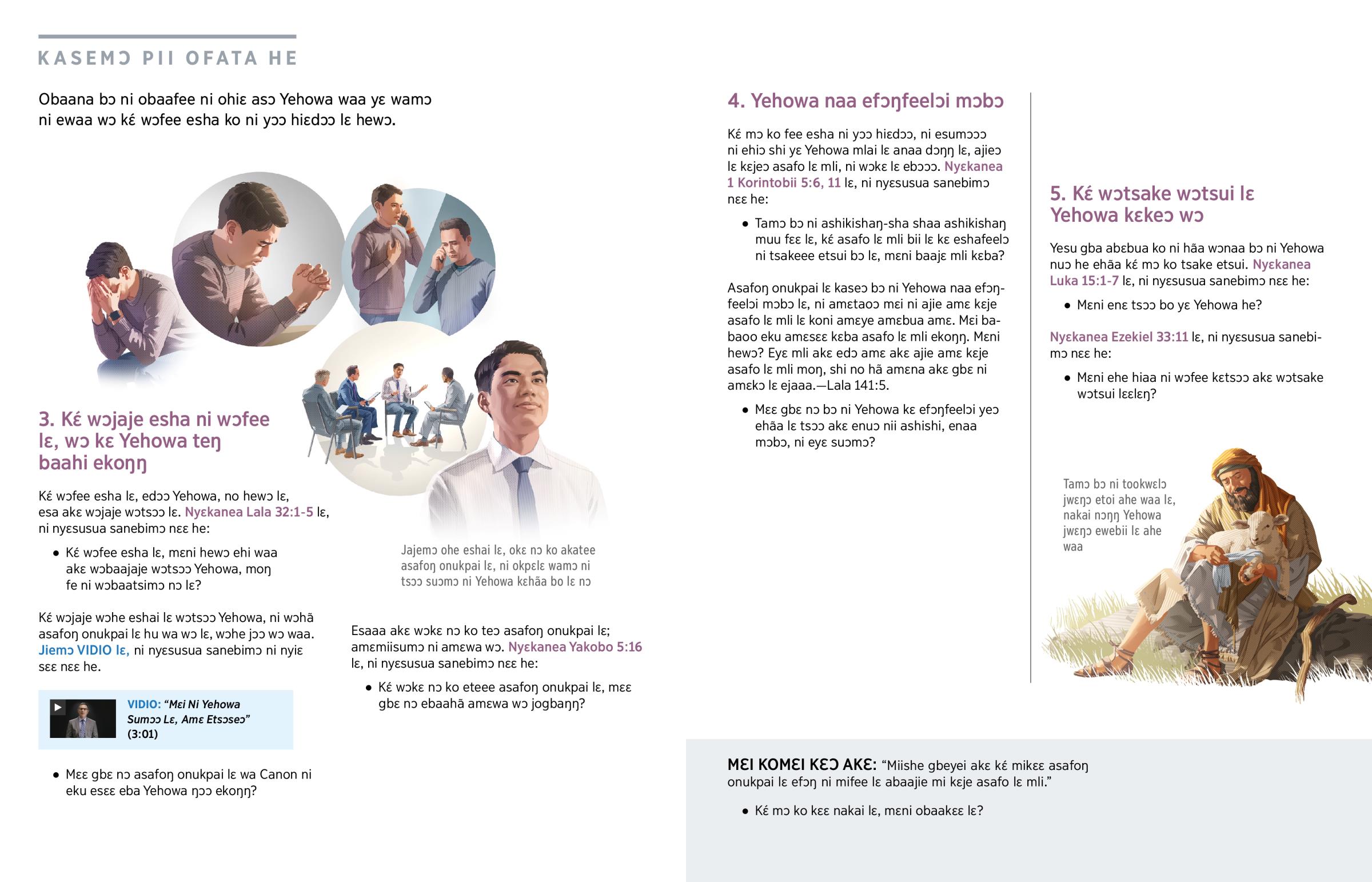 Kɛ́ wɔjaje wɔhe eshai lɛ wɔtsɔɔ Yehowa, ni wɔhã asafoŋ onukpai lɛ hu wa wɔ lɛ, wɔhe jɔɔ wɔ waa. Jiemɔ VIDIO lɛ, ni nyɛsusua sanebimɔ ni nyiɛ sɛɛ nɛɛ he.