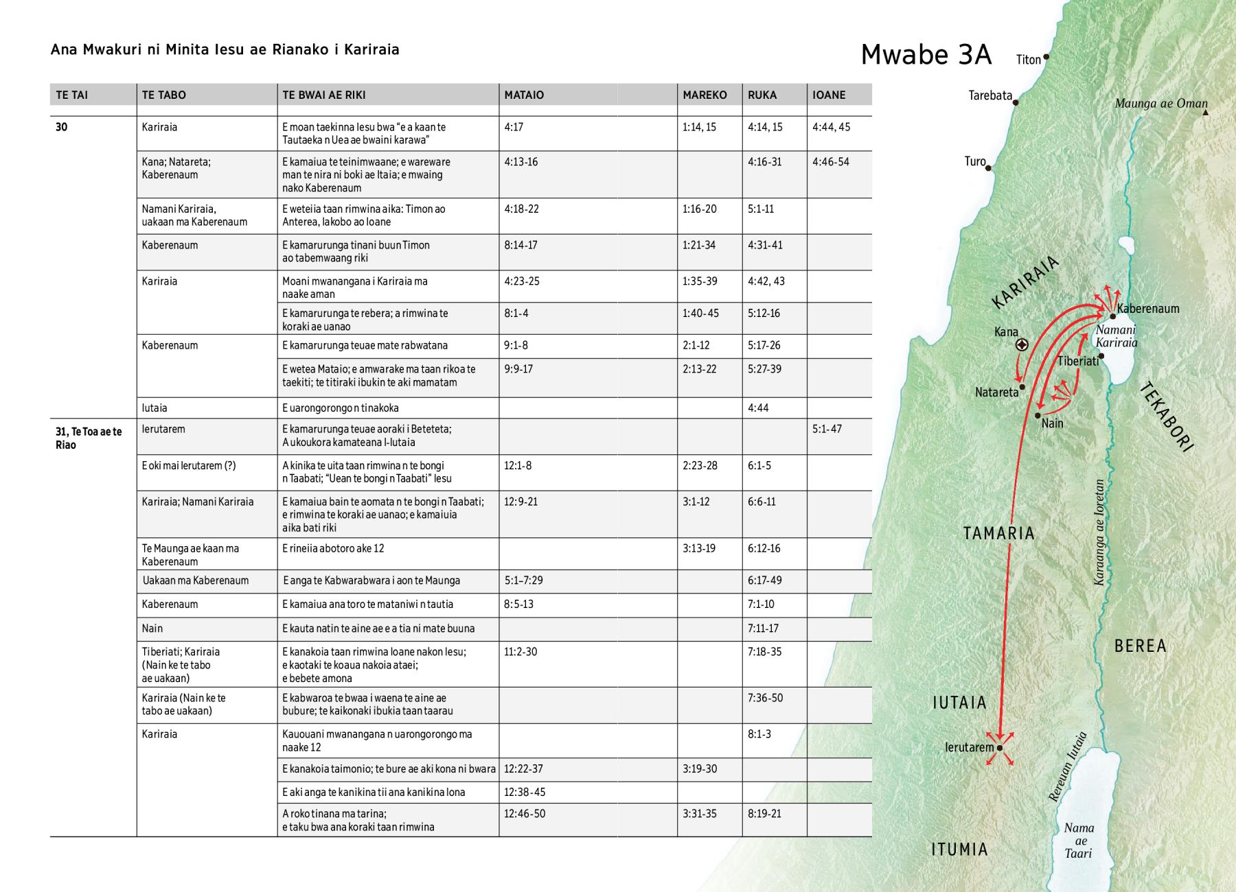 E kamaiua te teinimwaane; e wareware man te nira ni boki ae Itaia; e mwaing nako Kaberenaum |