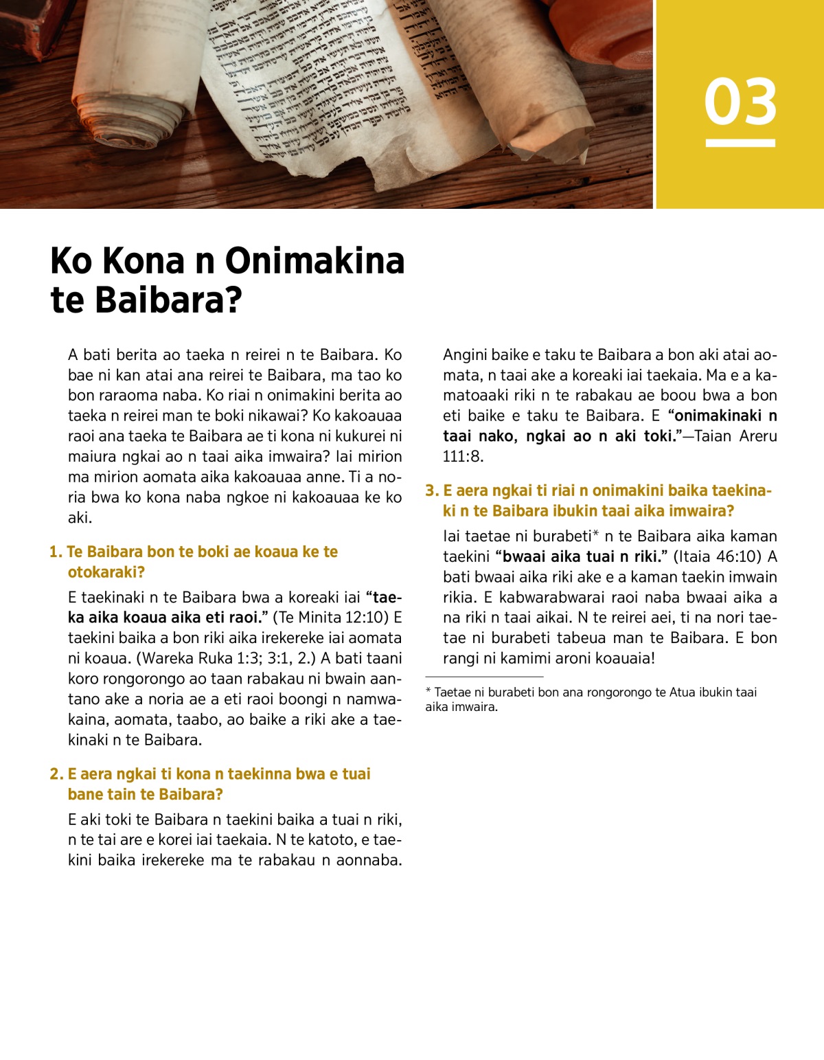 3. E aera ngkai ti riai n onimakini baika taekinaki n te Baibara ibukin taai aika imwaira?