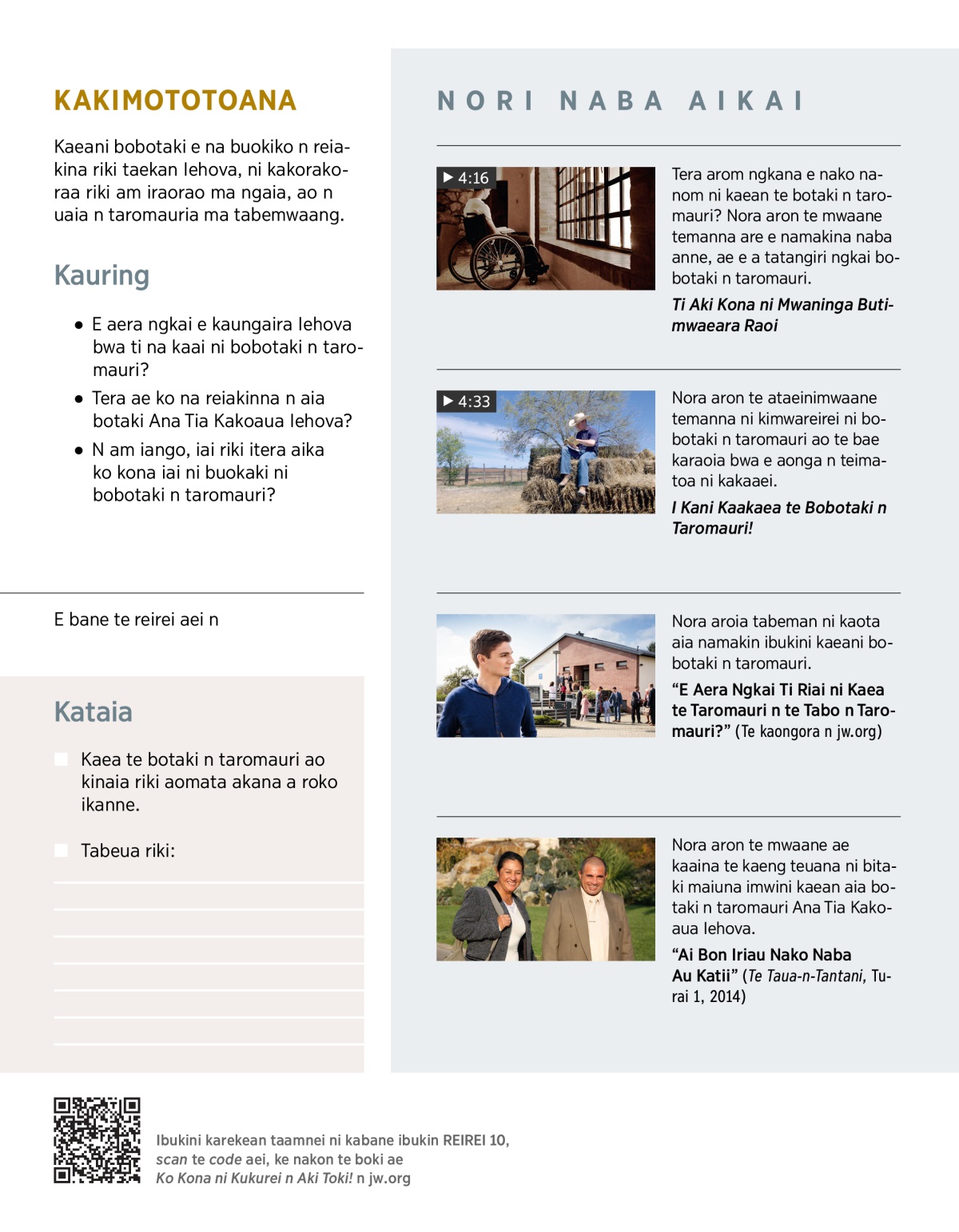 “E Aera Ngkai Ti Riai ni Kaea te Taromauri n te Tabo n Taromauri?” (Te kaongora n jw.org)