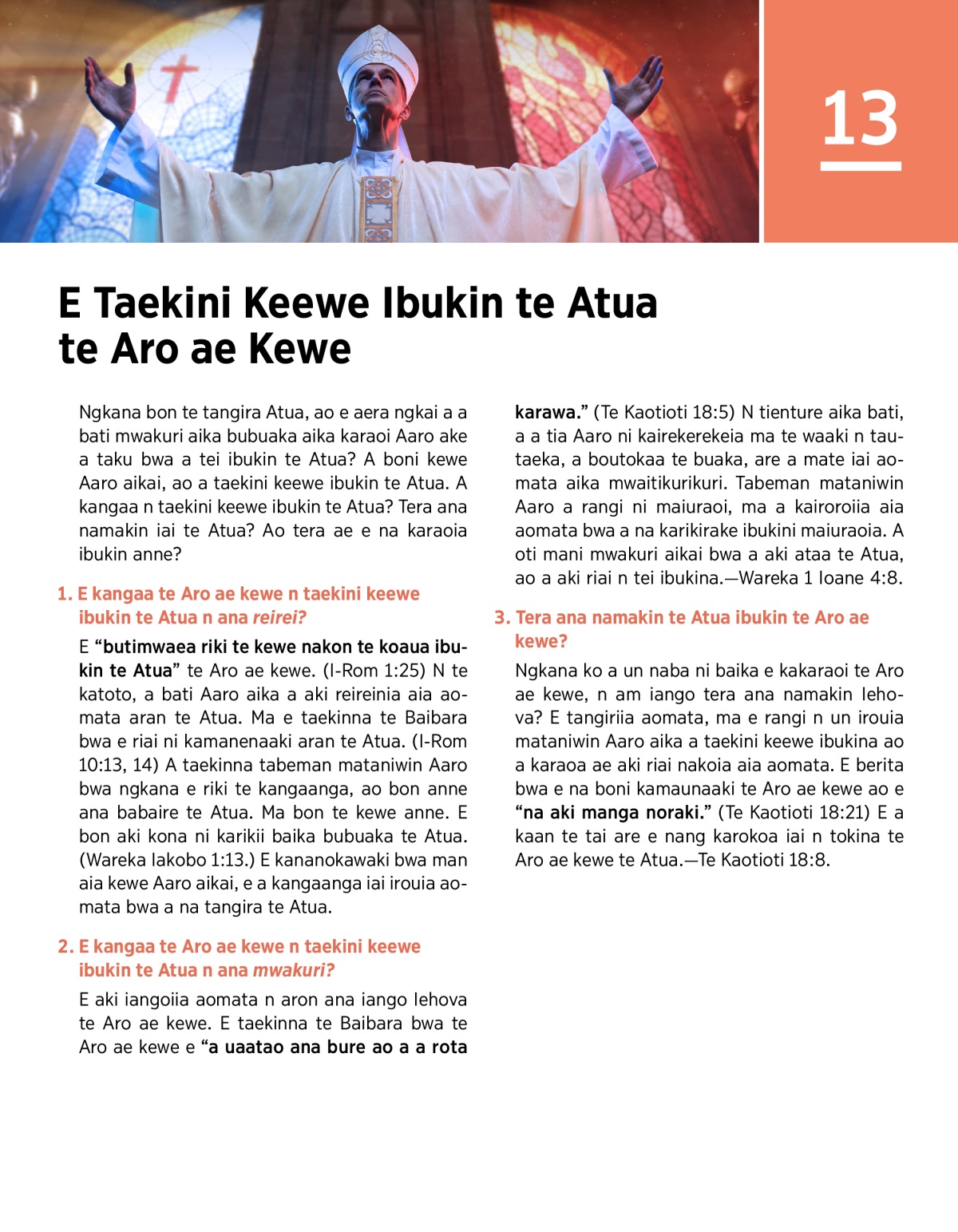 1. E kangaa te Aro ae kewe n taekini keewe ibukin te Atua n ana reirei?