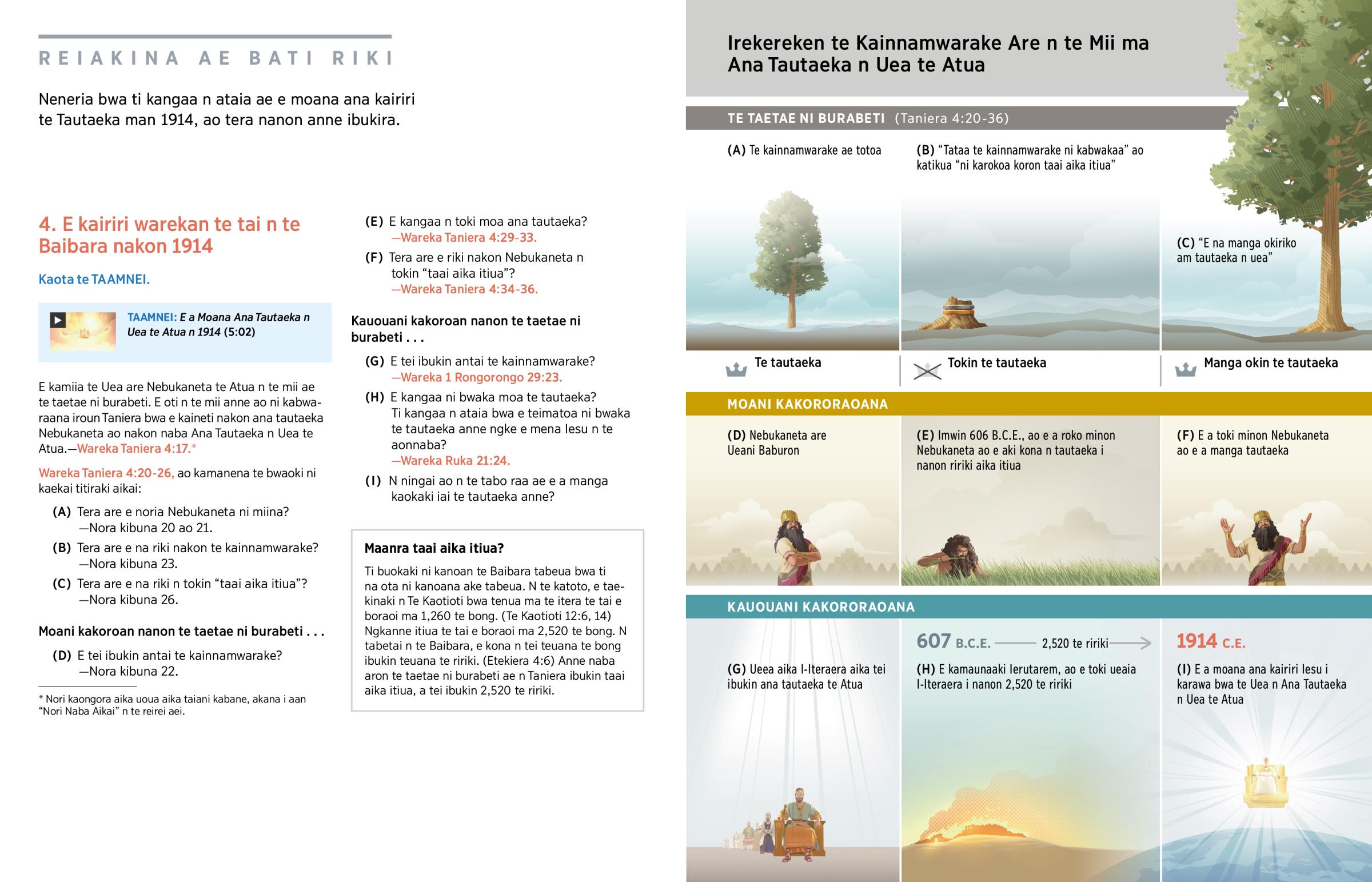 (H) E kangaa ni bwaka moa te tautaeka? Ti kangaa n ataia bwa e teimatoa ni bwaka te tautaeka anne ngke e mena Iesu n te aonnaba?—Wareka Ruka 21:24.