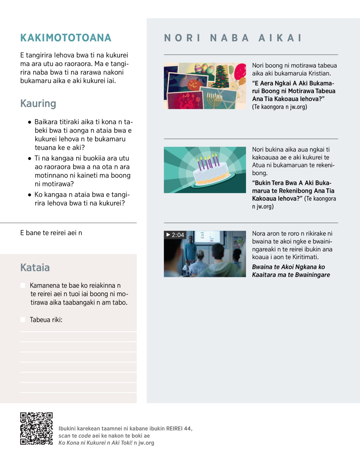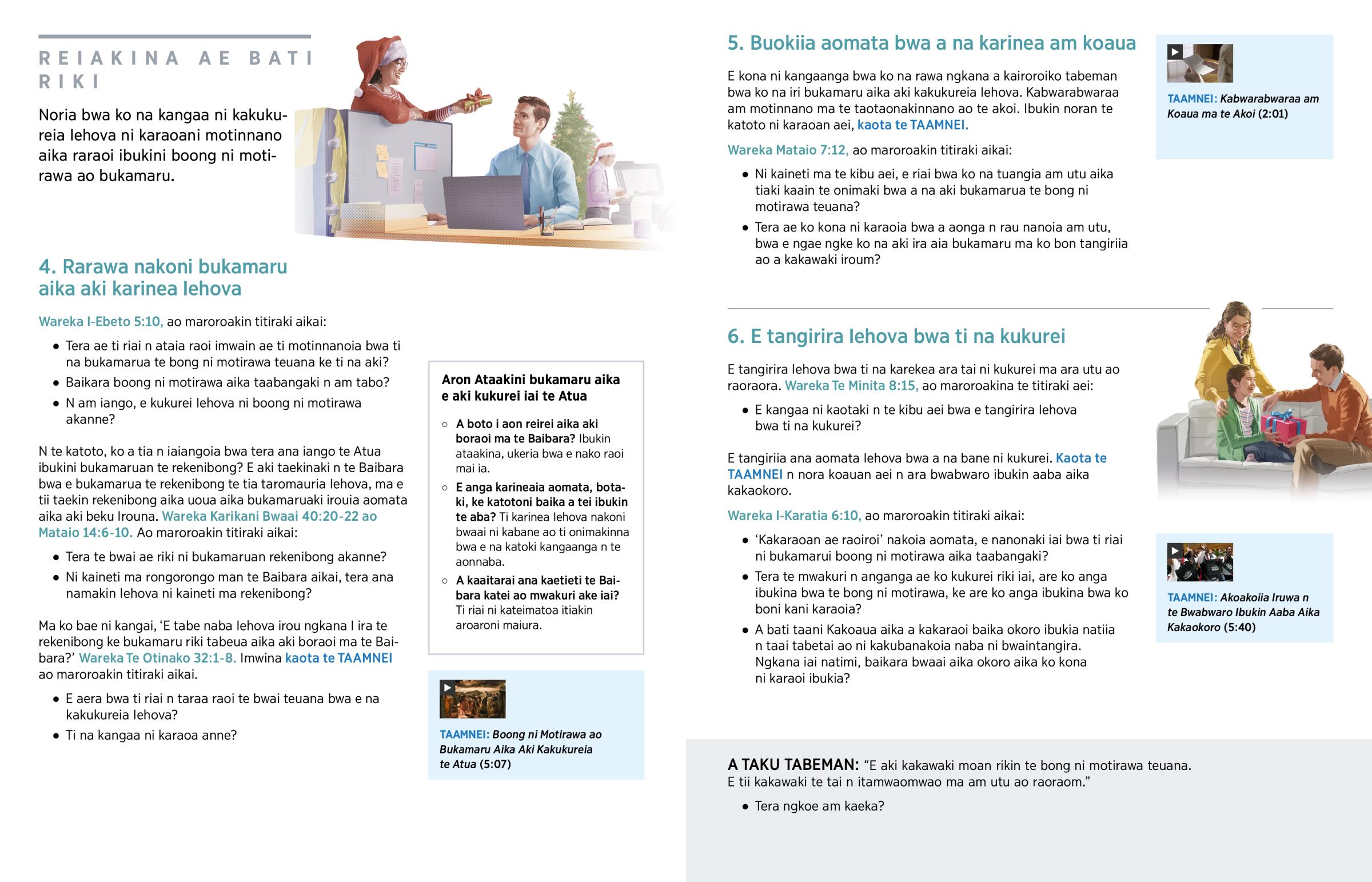 “Bukin Tera Bwa A Aki Bukamarua te Rekenibong Ana Tia Kakoaua Iehova?” (Te kaongora n jw.org)